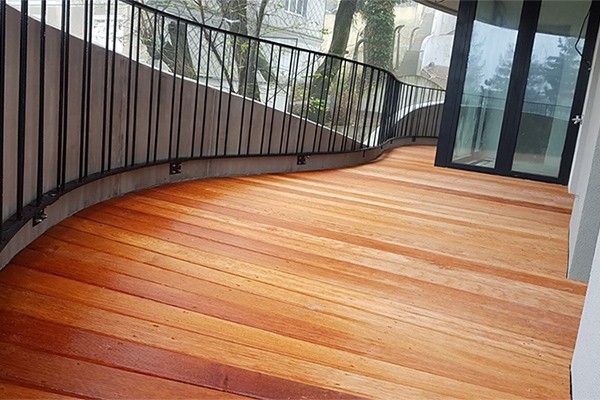 Boris Dobrodenka nám ukazuje aj terasy s výhľadmi. Prechádzame sa na nich po drevených podlahách z exotického dreva kumaru.