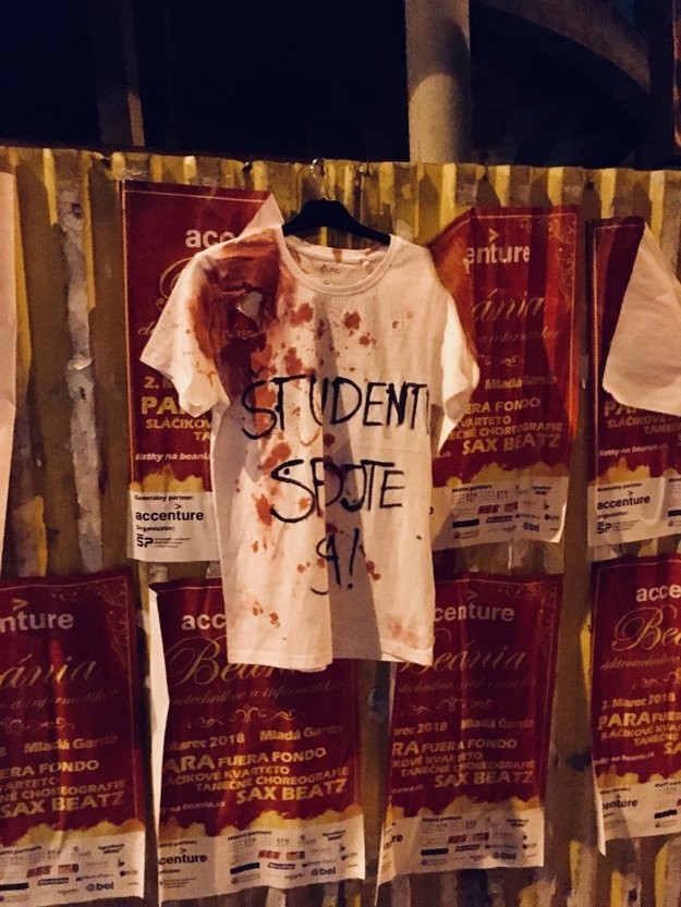 Dnes doobeda ste na niektorých miestach v Bratislave mohli natrafiť na biele tričko s rôznym nápisom, zašpinené krvou. Nejde však o žiaden zločin, ale o iniciatívu slobodne a nezávisle zorganizovaných ľudí rôznej vekovej kategórie, ktorí sa rozhodli protestovať voči aktuálnej politickej situácii a primárne zločinu vraždy, o ktorej sa verejnosť dozvedela uplynulý pondelok.