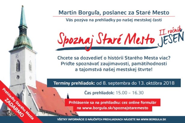 (pr) Milí Staromešťania, minulý rok na jar som po prvýkrát spustil projekt SPOZNAJ STARÉ MESTO. Inšpiroval ma k tomu môj osobný a veľmi blízky vzťah k našej mestskej časti.