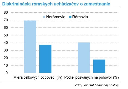 „Náš experiment preukázal diskrimináciu Rómov na trhu práce. Majú približne o polovicu menšiu šancu, že im na žiadosť o zamestnanie firma odpovie, než iní uchádzači s rovnakou kvalifikáciou a vzdelaním,“ priblížil Slavomír Hidaš zo spomínaného inštitútu. Podstatou experimentálneho testovania diskriminácie bolo zasielanie žiadostí o prácu fiktívnymi rómskymi a nerómskymi uchádzačmi. Informácie o fiktívnych uchádzačoch v životopisoch mali jasne naznačovať rómsky a nerómsky pôvod, pričom výber ich mien prebehol na základe ankety. Podľa výsledkov bolo na pohovor pozvaných 40,3 % nerómskych uchádzačov a len 17,7 % rómskych. Iba 37,1 % rómskych uchádzačov dostalo aspoň nejakú formu odpovede na svoju žiadosť oproti 69,4 %-nému podielu odpovedí nerómskym uchádzačom. Rozdiely boli výraznejšie v prípade uchádzačov so stredoškolským vzdelaním, vysokoškoláci v experimente nevykázali štatistickú významnosť.