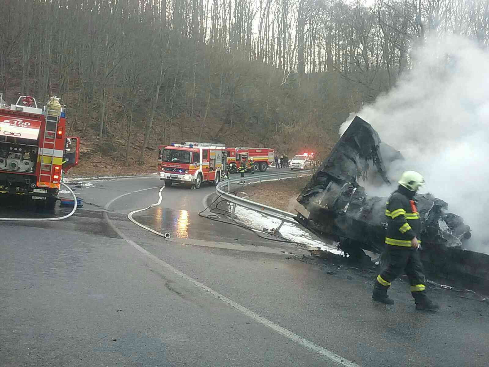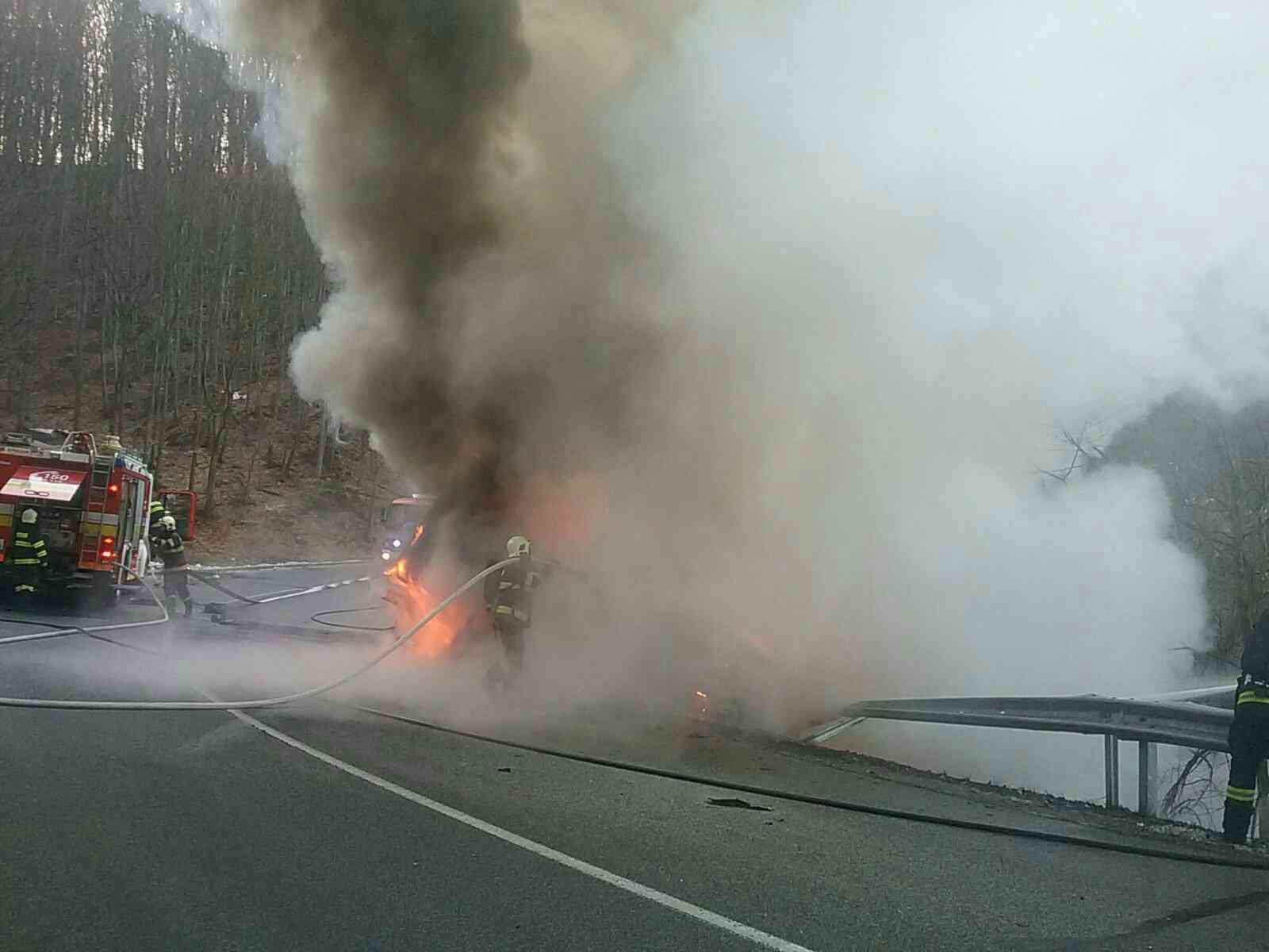 "Dnes, 19.02.2019, bol krátko pred siedmou hodinou rannou nahlásený požiar motorového vozidla na Pezinskej babe v smere z Pezinka do Malaciek. Hasičská jednotka po príjazde na miesto vykonala prieskum, pri ktorom zistila, že ide o požiar dodávky, ktorá následne po prepuknutí požiaru prerazila zvodidlá a zišla z cesty do lesa. Hasiči požiar lokalizovali a snažia sa ho uhasiť a zároveň zafixovať dodávku, aby nevošla hlbšie do lesa. Štátna cesta č. 503 z Pezinka do Malaciek je úplne uzatvorená," uviedli hasiči .