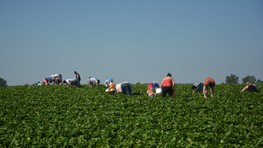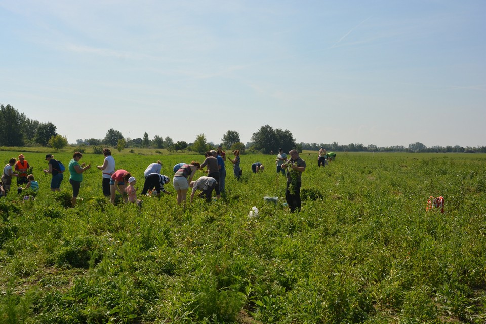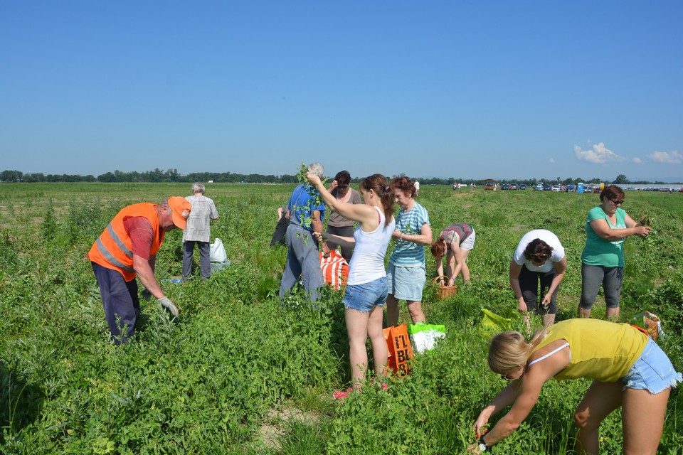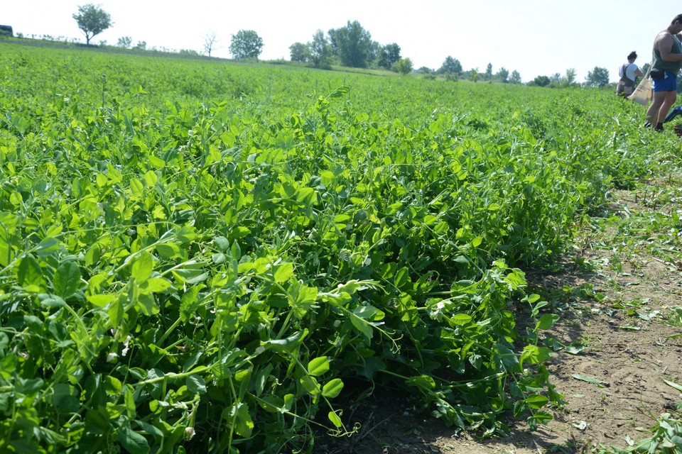 Asi 150 metrov od jahodových polí sú v Dunajskej Lužnej aj hrachové polia. Aj tam je človek, ktorý usmerňuje zberačov. Nie všetci rešpektujú jeho pokyny. „Nechoďte až dozadu,“ kričí na dvojicu, ktorá sa rozbehla od hlúčiku zberačov hlbšie do poľa s vidinou lukratívnejších kusov. Namiesto toho, aby rešpektovali, že poľnohospodári musia byť efektívni a logicky nechcú, aby im samozberači pošliapali pole a spôsobili chaos v systéme, sa ešte cítia dotknutí. Šomrú si nelichotivé komentáre na margo zamestnanca. Slušnejší prídu, pozdravia, informujú sa ako hrach zbierať a aj kde sa majú postaviť. „Vytrhnite celú rastlinu a potom obtrhávajte struky, zvyšok rastliny hádžte na kopu,“ vysvetlí im ochotne a aj pomôže zbierať. Napriek tomu sa o chvíľu nájde ďalšia slečna, ktorá čupiac odtrháva z rastlín len niektoré struky. „Pani, nerobte to takto, ľudia, čo prídu po vás budú dezorientovaní, nebudú vedieť, či už je to vyzbierané alebo nie,“ hovorí jej zamestanec. „Ale ja chcem len mladý hrášok,“ reaguje ona.
