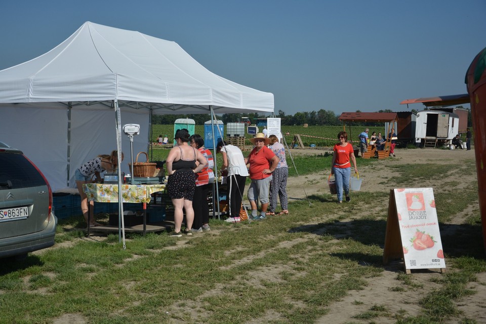 „Zbierať chodím tretí rok. Je to tu podľa mňa lepšie ako v Rajke. Tam každý zbiera, kde chce, tu je zber zorganizovaný. Brigádnik vás usmerní, do ktorého radu môžete ísť zbierať, takže nemusíte obiehať pole a jahody hľadať,“ podelila sa s nami o skúsenosť pani, čo prišla na jahody aj s malou dcérou. Dve kilá nazbierali v pohode do pol hodiny a odchádzajú.