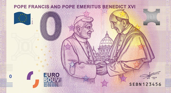 Ďalším lákadlom bude okrem dvoch nových bratislavských vydaní aj premiéra talianskej euro souvenir bankovky s vyobrazením pápeža Františka a emeritného pápeža Benedikta XVI., ktorej predaj bude premiérovo spustený tiež na zberateľských dňoch. Aj tú si budú môcť záujemcovia kúpiť za cenu dve eurá za kus prostredníctvom špeciálneho predajného automatu.
