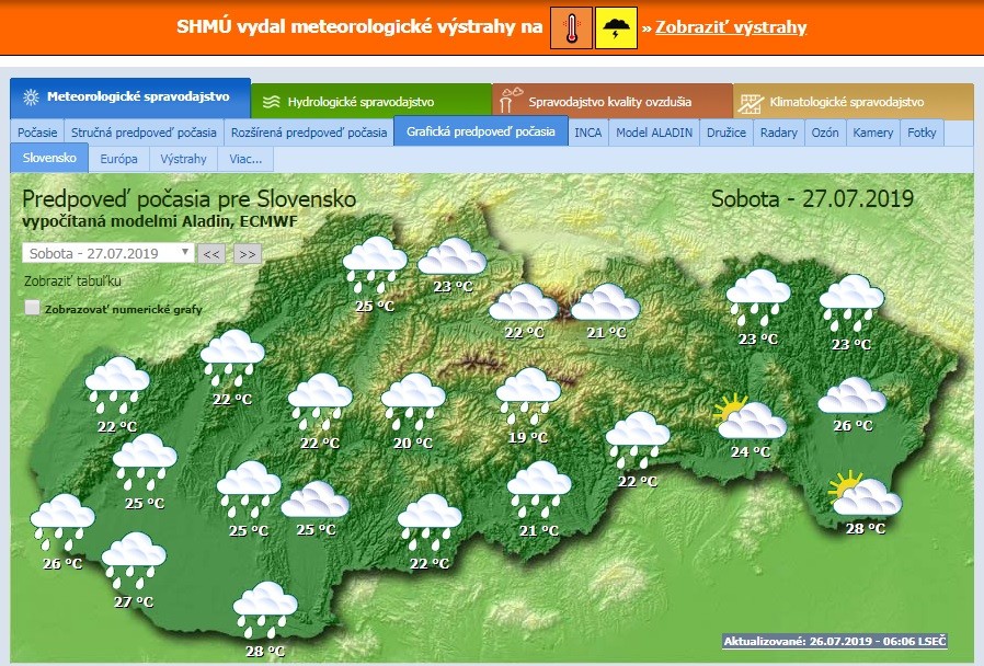 Výstraha platí dnes (v piatok 26.7.) od 14.00 do 18. h.