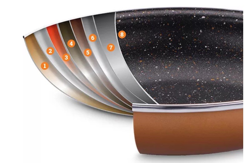 Aktuálne výrobca zašiel ešte ďalej a svoj riad obohatil aj o medené čiastočky v rámci série Stone Legend Copperlux. Meď, ako vieme, má vynikajúcu vodivosť, riad sa vďaka nej rýchlejšie zohrieva a vaše varenie sa stáva ešte efektívnejším.