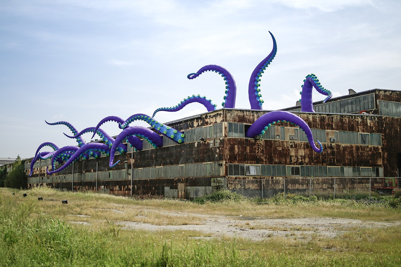Rešpektovaní britskí dizajnéri Filthy Luker a Pedro Estrellas ukážu svoju víziu kreslených scén pretavených do reálneho sveta. Legendárnu budovu Skladu č. 7 obsadí gigantická chobotnica, ktorej zvedavé chápadlá budú celý víkend vyrážať z okien, dverí a balkónov tejto ikonickej budovy nad Dunajom. Neprehliadnuteľný výjav sa odohrá aj v River Parku, kde nečakane pristane vesmírna raketa, zahalená oblakom dymu. Vodná trasa prinesie aj nekonečnú preliezačku pre malých aj veľkých od rakúskych architektov Numen/for Use v Zuckermandeli či monumentálne rozprávajúce slnko od Matje! v Panorama Parku.