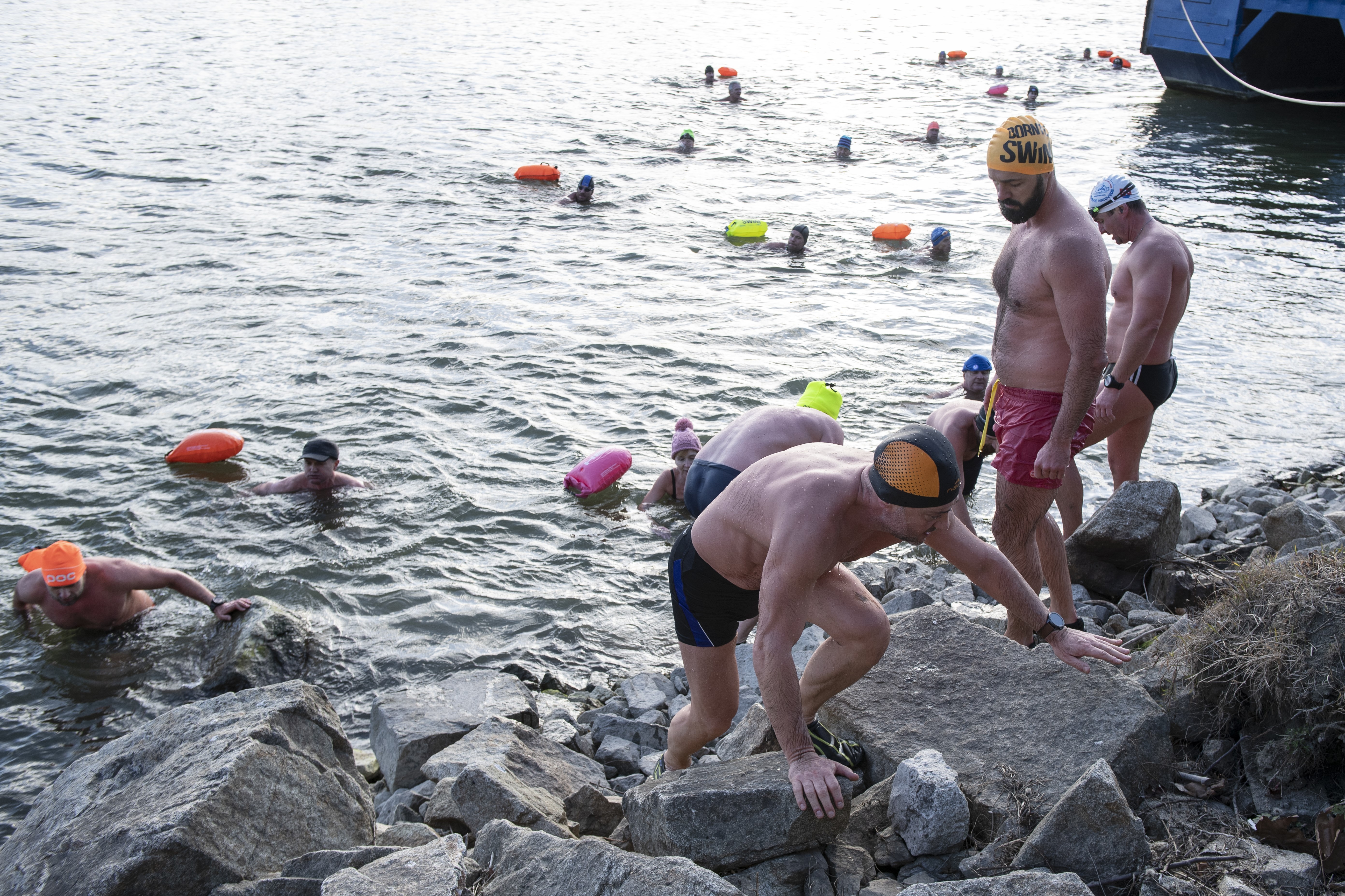 V centre hlavného mesta sa do Dunaja ponorili otužilci. Popri brehu a krížom cez tok si v nedeľu zaplávali pri príležitosti 21. ročníka Memoriálu Jozefa Makaia, ktorý organizuje občianske združenie (OZ) Ľadové Medvede Bratislava.