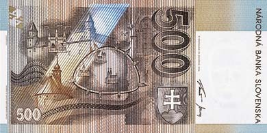 Na rubovej strane bankovky bol zobrazený Nitriansky hrad. Týmto motívom sa viacnásobne prelínala časť koráľkového náhrdelníka z 9. storočia s bronzovým príveskom v tvare mesiaca, ktorý pochádza z archeologického náleziska Nitra-Lupka: