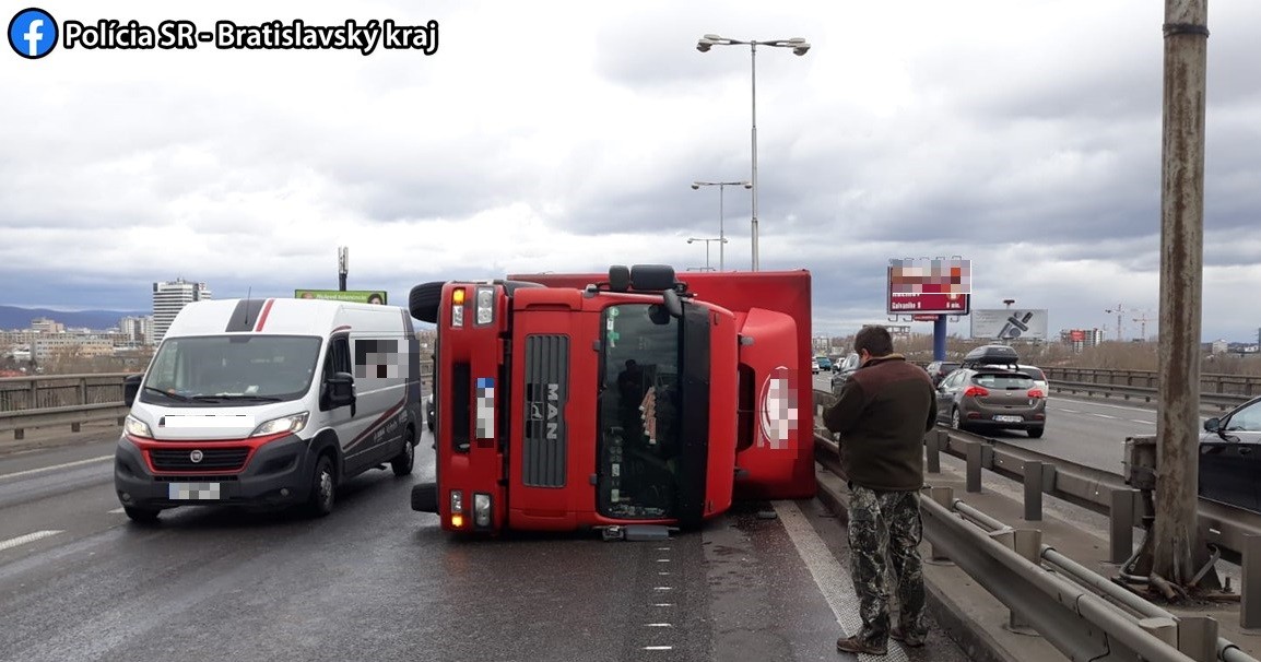 Takto došlo k prevráteniu kamióna na Prístavnom moste: