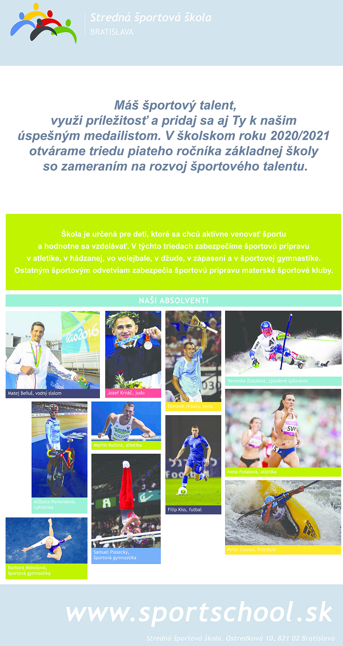 Šport je výrazným spoločenským fenoménom, či už pre dospelých, ale hlavne pre deti a mládež. Zdravý vývoj mladej generácie, zmysluplné využitie voľného času a budúcnosť úspešnej reprezentácie Slovenska vo svete sú jeho hlavnými piliérmi. I keď je to v momentálnej situácii pre mnohých rodičov a žiakov náročné byť vo väčšej miere doma a venovať sa štúdiu v domácom prostredí, rodiny štvrtákov sa môžu v tomto období zamyslieť, či zotrvajú na svojej základnej škole alebo školu vymenia.