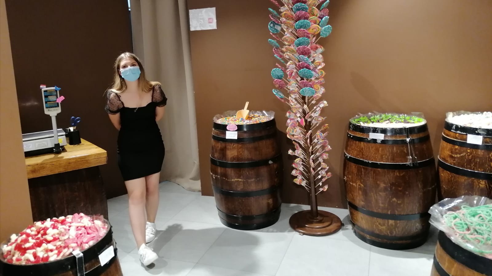 Niektorí predavači však v Chorvátsku nosili rúška aj pred 13. júlom, napríklad táto dievčina v obchode so sladkosťami mala okrem rúška i rukavice.
