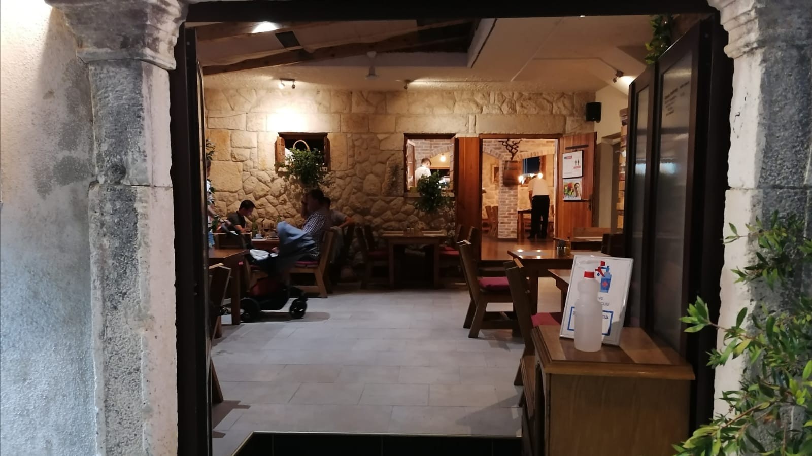 Pri vstupe do každej reštaurácie či obchodu je umiestnená dezinfekcia. Táto reštaurácia sa nachádza v starobylom mestečku Nin.