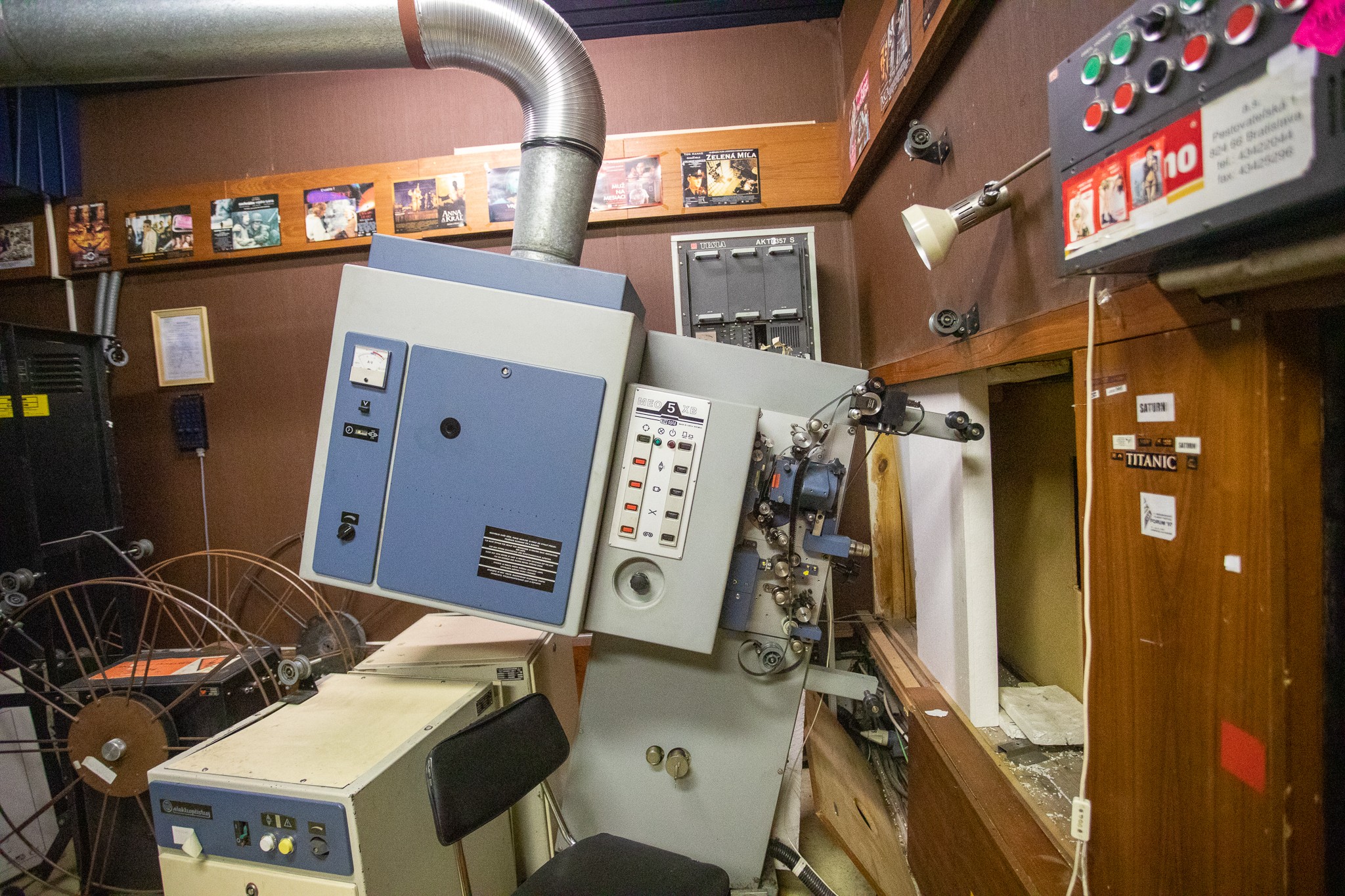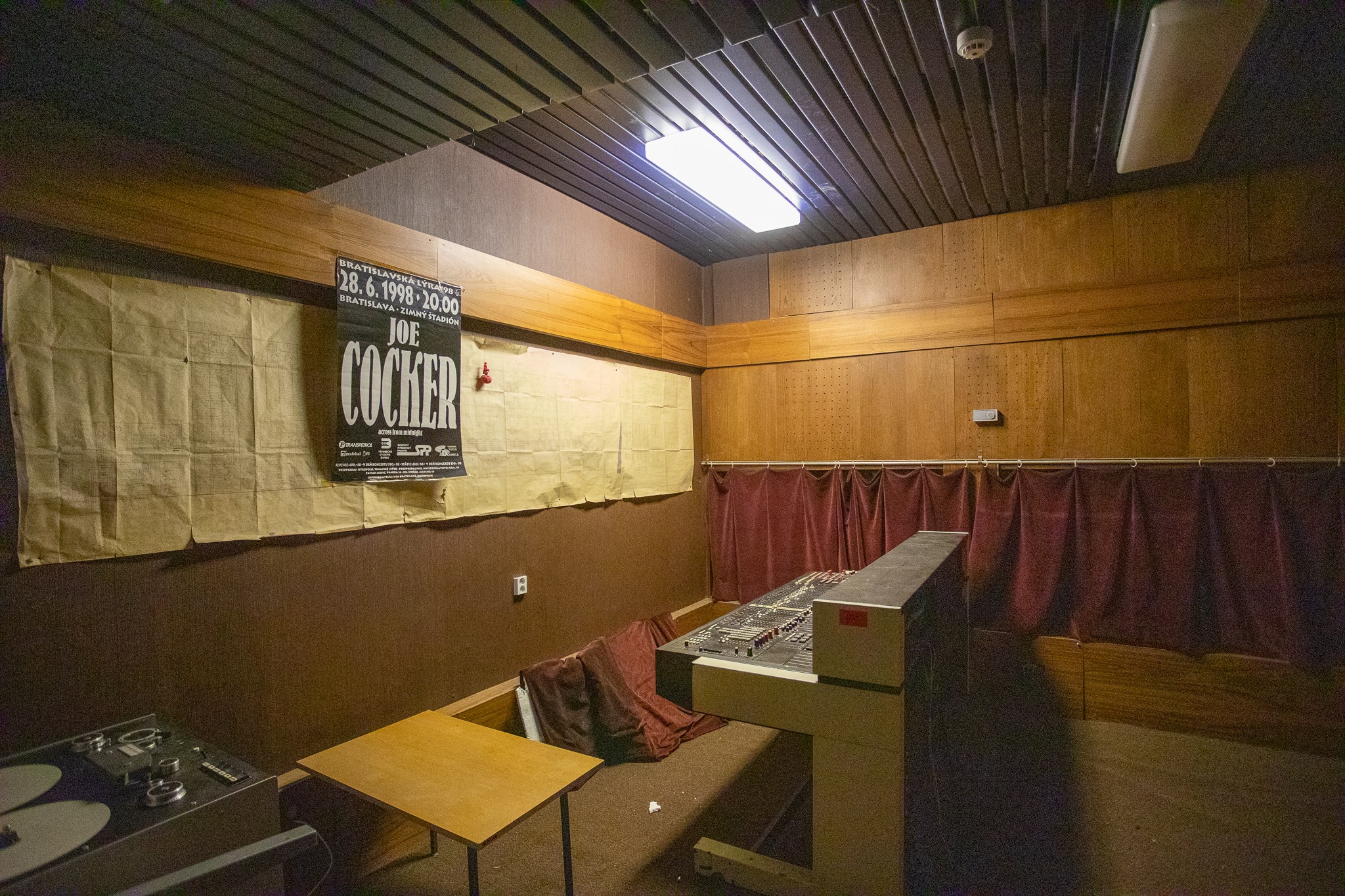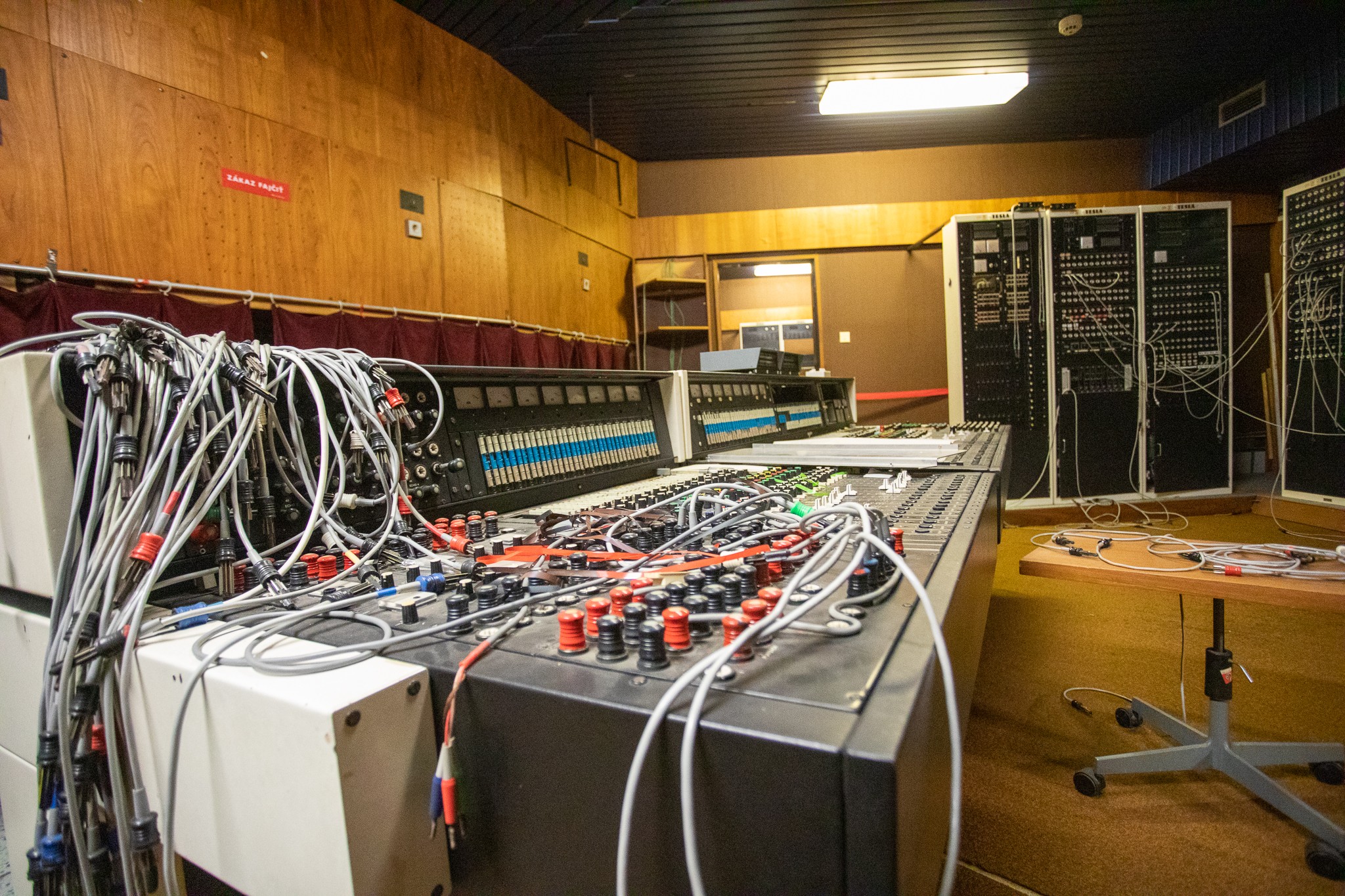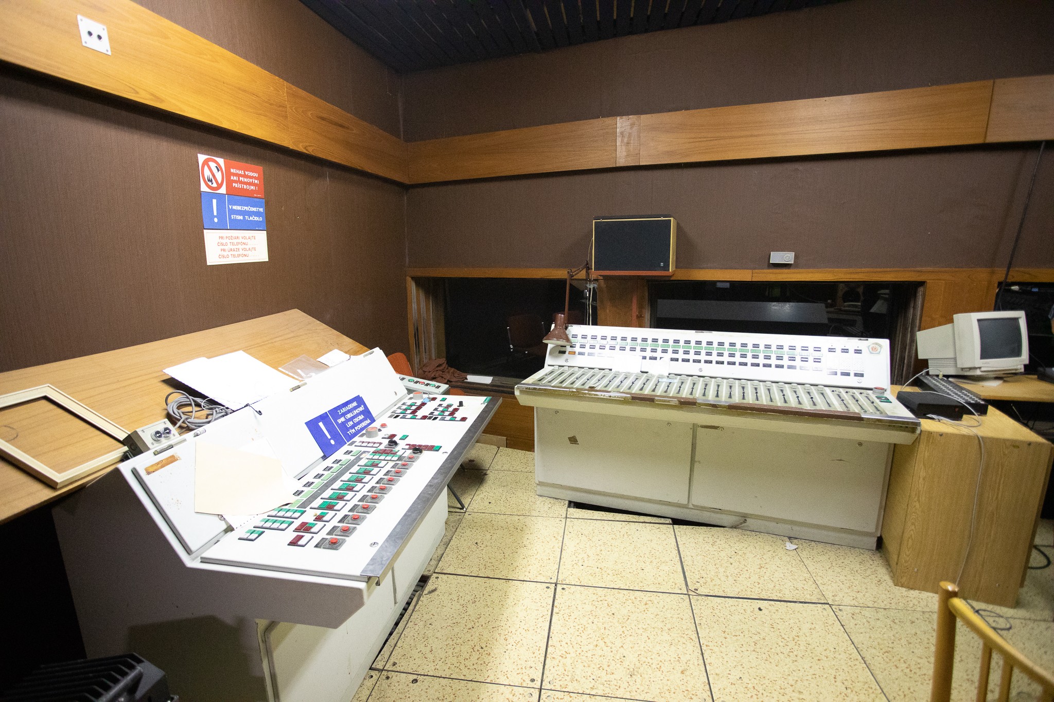 Pri prehliadke jej vnútorných priestorov, miestností, chodieb sme najskôr nahliadli do svetelnej, zvukovej a prenosovej réžie, ktoré mali v minulosti svoje využitie napríklad pri koncertoch. Dnes tam nájdete množstvo zaprášenej zastaralej techniky.
