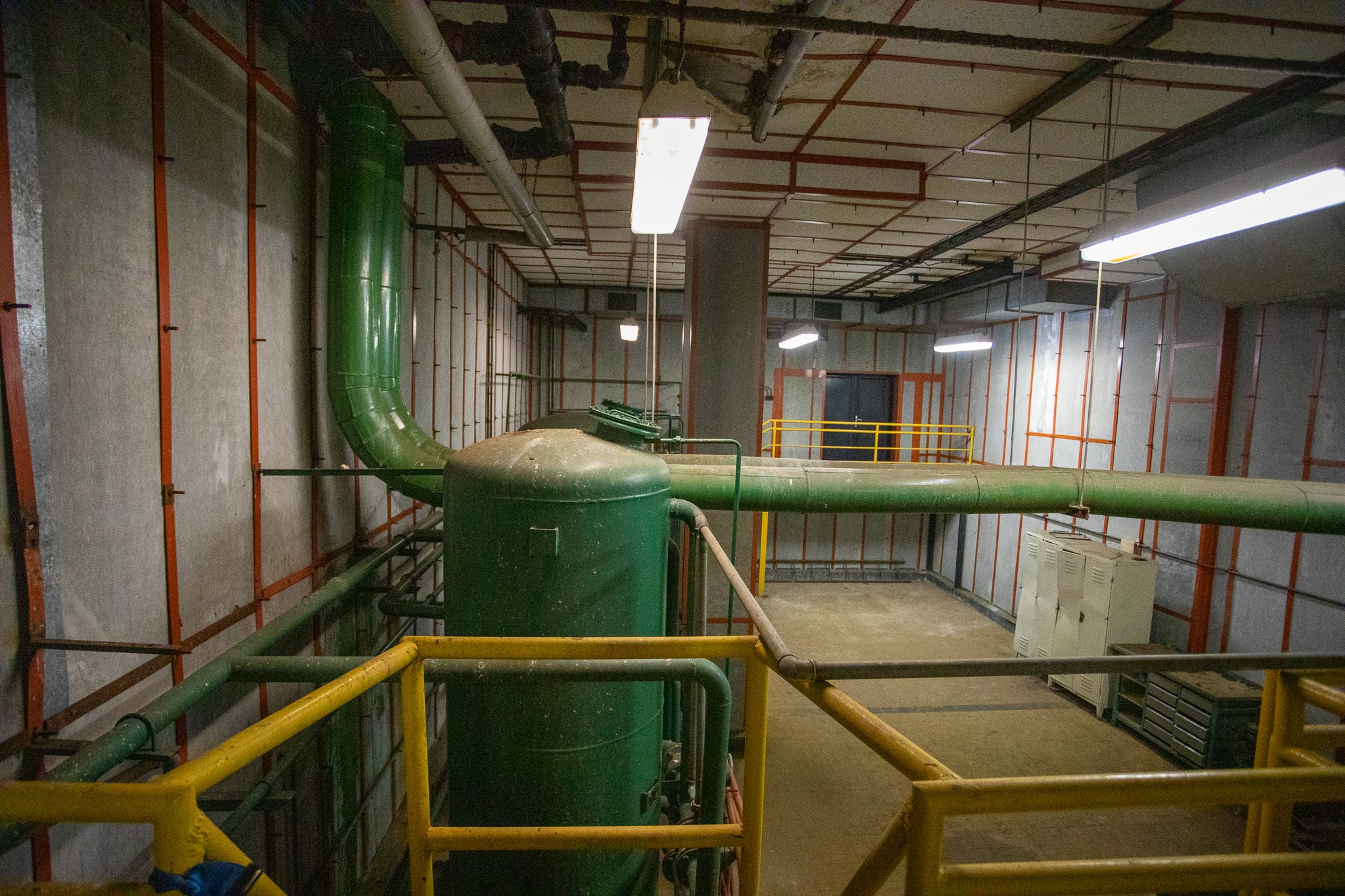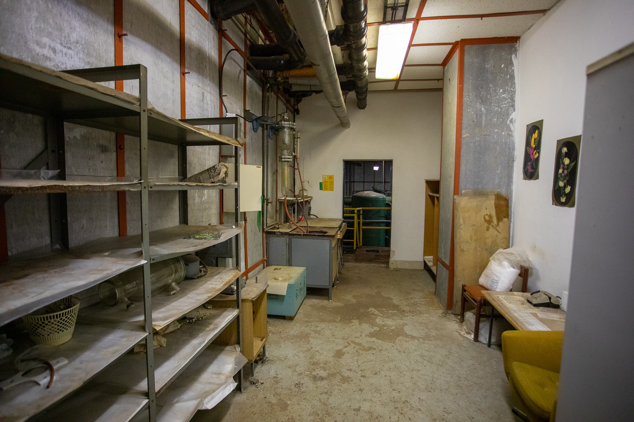 Chemická úpravovňa vody. V tejto miestnosti sa upravovala voda na kúrenie, do kadí sa prisypávala soľ, čo vodu zmäkčilo. Celé vykurovanie je postavené na výmenníkoch. Sedela tu chemička, ktorá pracovala v miestnosti bez okna a upravovala vodu. V kadiach sa destilovala voda kvôli generátorom, náhradným batériám. Steny sú azbestové, ich likvidácia bude podliehať špeciálnym pravidlám.