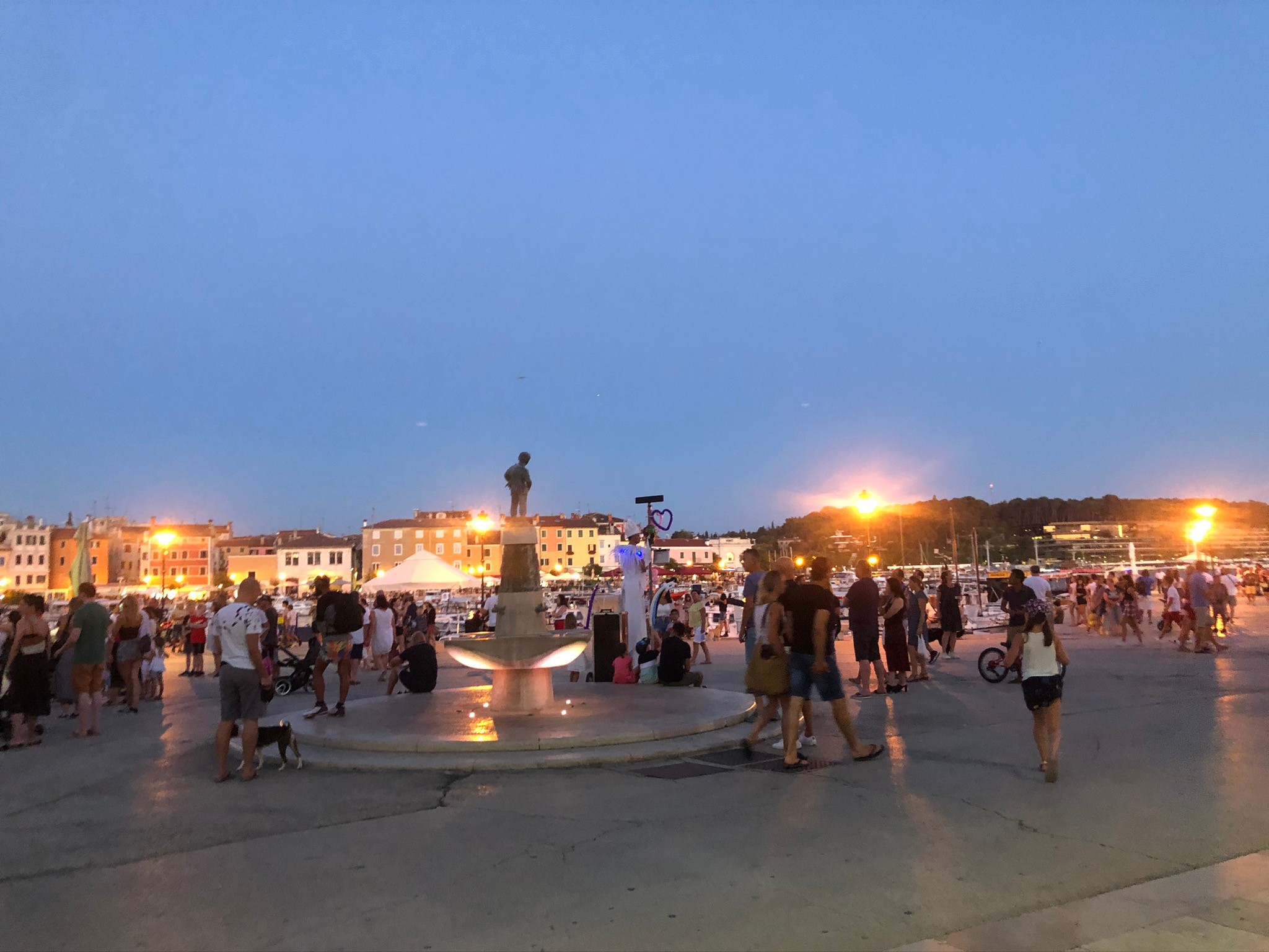 Ak si chcete vychutnávať večerný romantický Rovinj v starom meste, počítajte s tým, že turistov je tu určite najviac. Čím idete ďalej od centra, ľudí je menej. Ako sme sa dozvedeli od tunajších obyvateľov, turistov je menej ako po minulé sezóny, ale nie je ich zas tak málo. "August býva najsilnejší zo všetkých mesiacov, aktuálne to tak začína vyzerať, že ľudia pribúdajú, ale nie je to určite úroveň minulých rokov," povedal nám miestny, ktorý v starom meste prenajíma viaceré apartmány. Vo večerných hodinách boli reštaurácie či kaviarne plné, takisto exponované časti ako promenáda v centre a prístave.
