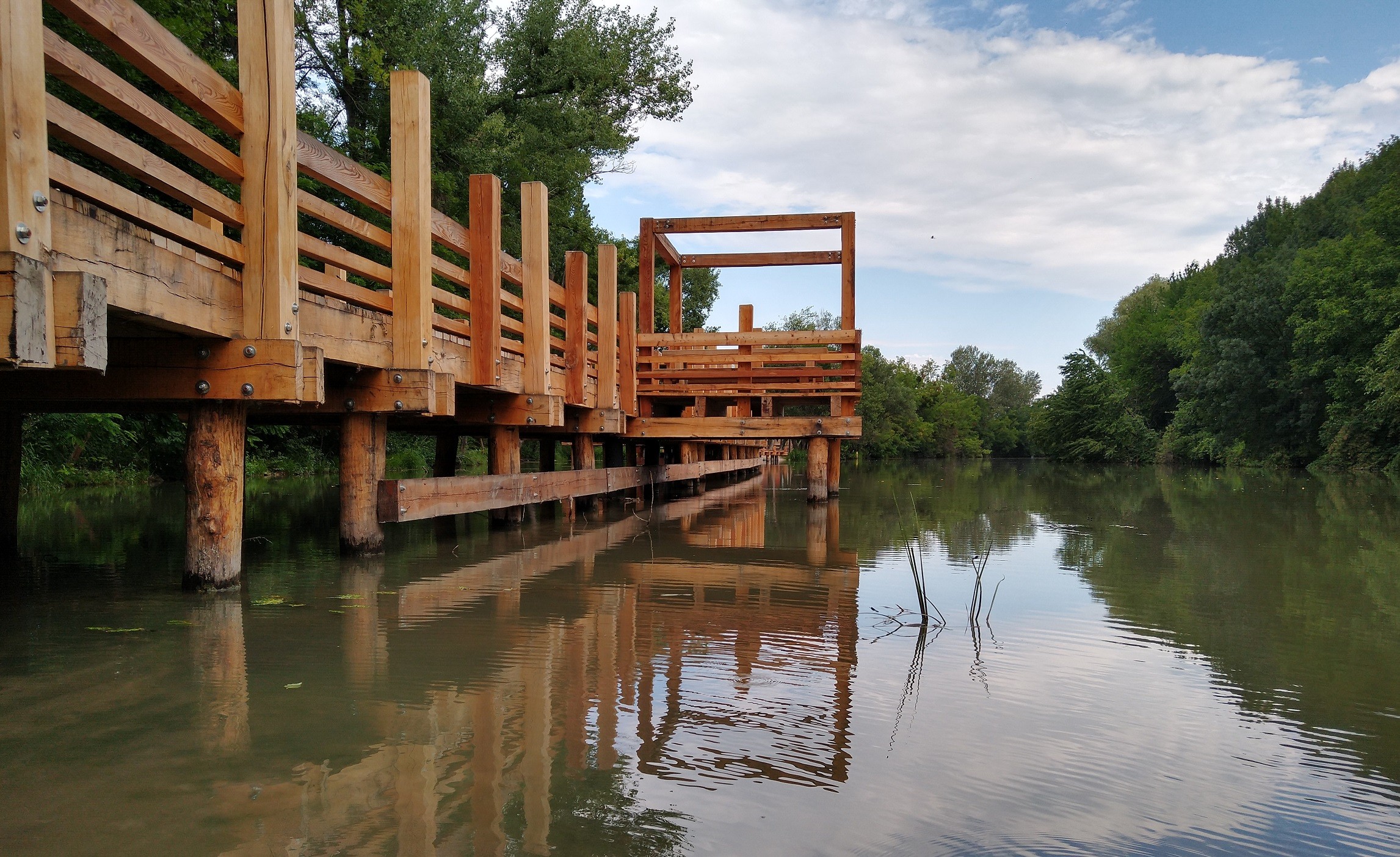 Keďže sme prišli v pracovný deň a navyše predpoludním, mohli sme si užívať luxus samoty, na drevenom móle sme stretli len štyri deti z tunajšej miniškôlky s vychovávateľkou. Najmä počas víkendov však býva plno, takže na vstup do Záleského majáka, vyhliadkovej veže na začiatku promenády, sa niekedy čaká v rade. My však vystupujeme po drevených schodíkoch sami a nerušene si užívame pekné pohľady na prírodu Malého Dunaja z väčšej perspektívy.