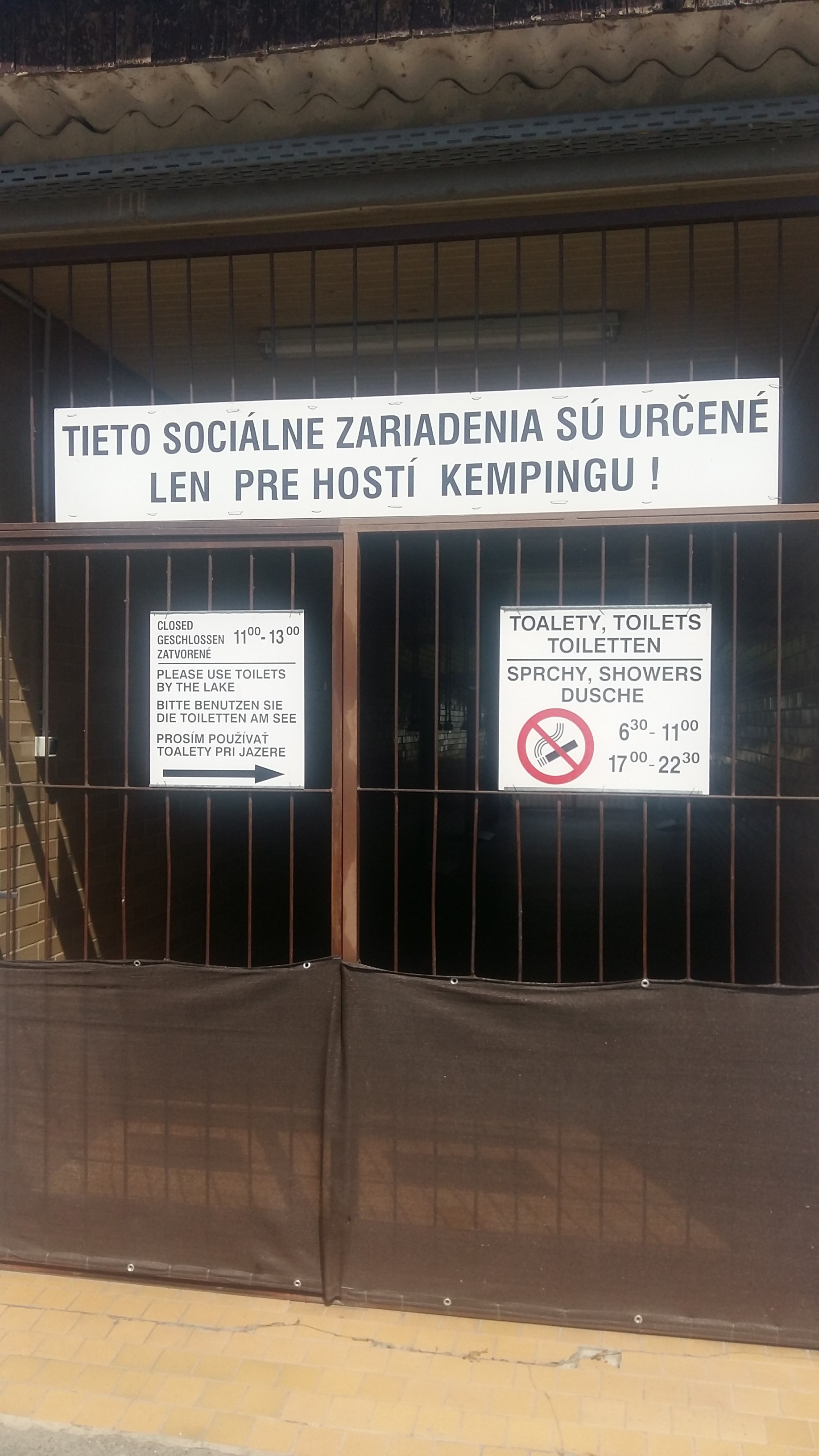 Zlaté piesky - Komfort ubytovaného klienta je jeden z najväčších problémov kempu na Zlatých pieskoch. Všade čítate tabule s obmedzeniami. Cez deň zatvorené jedny sprchy, „prosím používať sprchy pri jazere“, hlása tabuľa pri sociálnych zariadeniach len pre hostí kempingu. V noci máte smolu aj na toalety, takže sa vám stane, že večer pobehujete po kempe a márne hľadáte otvorené toalety. Tie na pláži môžete použiť, ale sú bez toaletného papiera a po celom dni v biednom stave, druhé sú pekné, ale po 20.00 h zatvorené. Na recepcii vás o tom bohužiaľ nestihli informovať. Kým vám dôjde, že na kľúčoch od chatky máte ďalší kľúč od jediných normálnych a prístupných toaliet, máte chuť poriešiť to v kríčkoch, ako to tu robí mnoho tu ubytovaných. Sú to totiž zväčša len párty partie, rodiny s deťmi to v chatke nerisknú.
