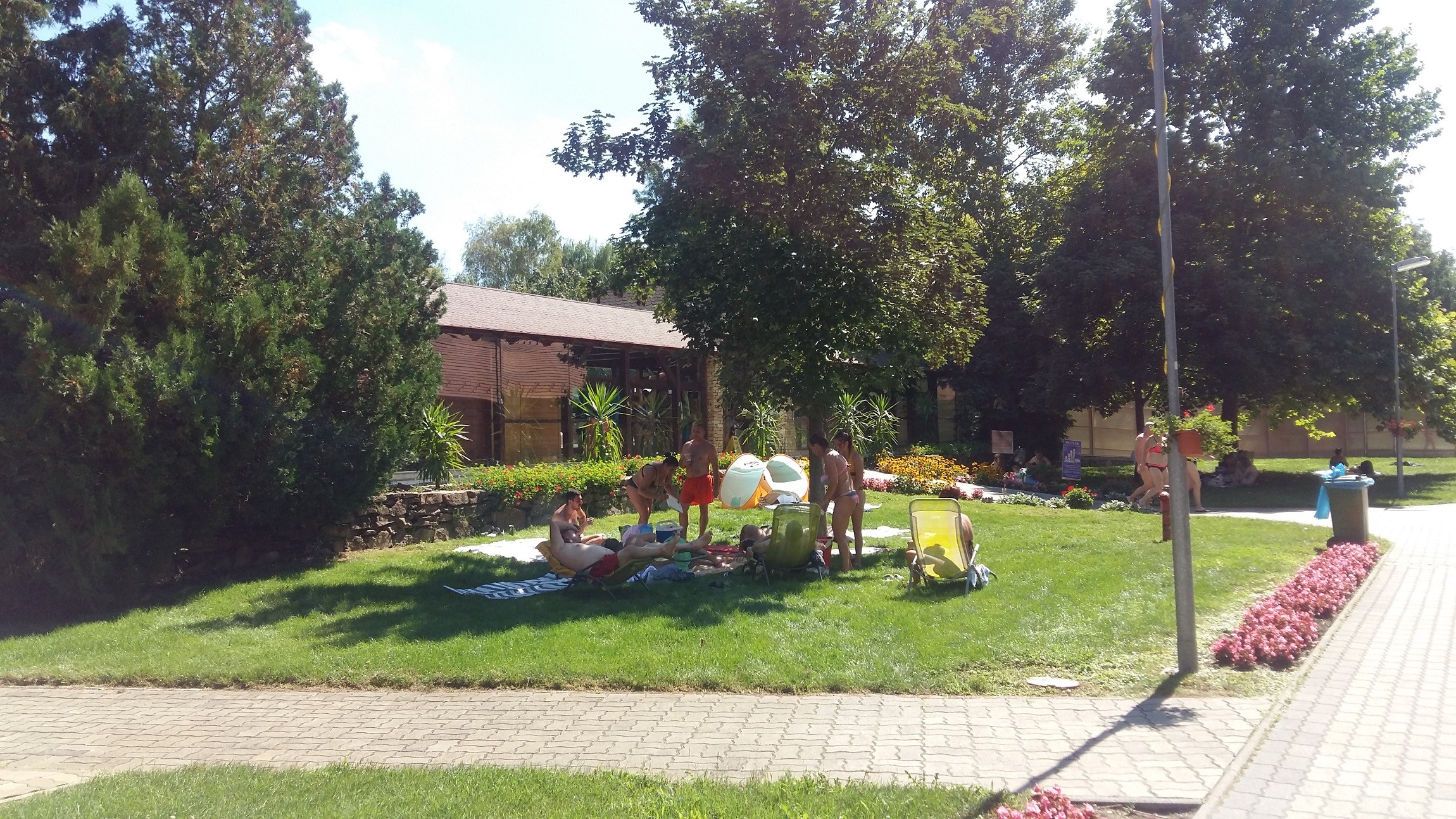 Bolo by nespravodlivé porovnávať termálne kúpalisko s niekoľkými bazénmi s jazerom, areál a atrakcie však porovnať možno. Na Zlatých pieskoch sa len smutno usmejete, že jedna jazda na tobogane stojí 50 centov. V Lipóte máte samozrejme všetky v cene. Rovnako ako saunu v štýlovom mlyne. Keď sa povie udržiavaný areál, v Lipóte to nie je fráza, krásna zelená tráva, zložiť deku môžete kdekoľvek, zákutia so kvetinovými záhonmi, fontána, pre deti viacero ihrísk... V areáli nevidíte na zemi jediný špak, niežeby tam chodili iní ľudia, ale pomaly na každom kroku máte popolníky. A studne s pitnou vodou pre váš komfort.