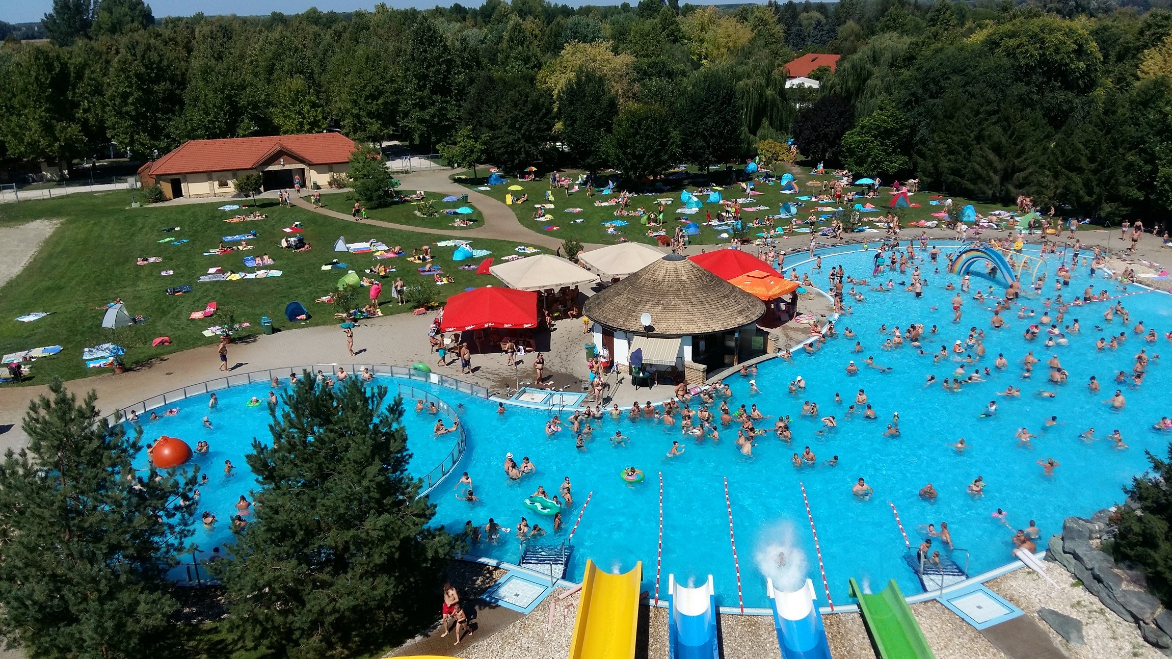 Lipót - Naraňajkujete sa tu od siedmej ráno vo veľmi solídnej reštaurácii hneď vedľa recepcie, kde nájdete aj malé potraviny otvorené od rána do večera. To vám spraví náladu. V tunajšej reštaurácii na kúpalisku dáte za rezeň s hranolčekmi 7 eur, ale tá porcia je neporovnateľná. Bufetov je tu viacero, ponuka klasická – langoše, pizza, palacinky - ale systém rokmi praxe vyšpičkovaný, aby minimalizoval čakanie v rade. Platba kartou je samozrejmosťou.