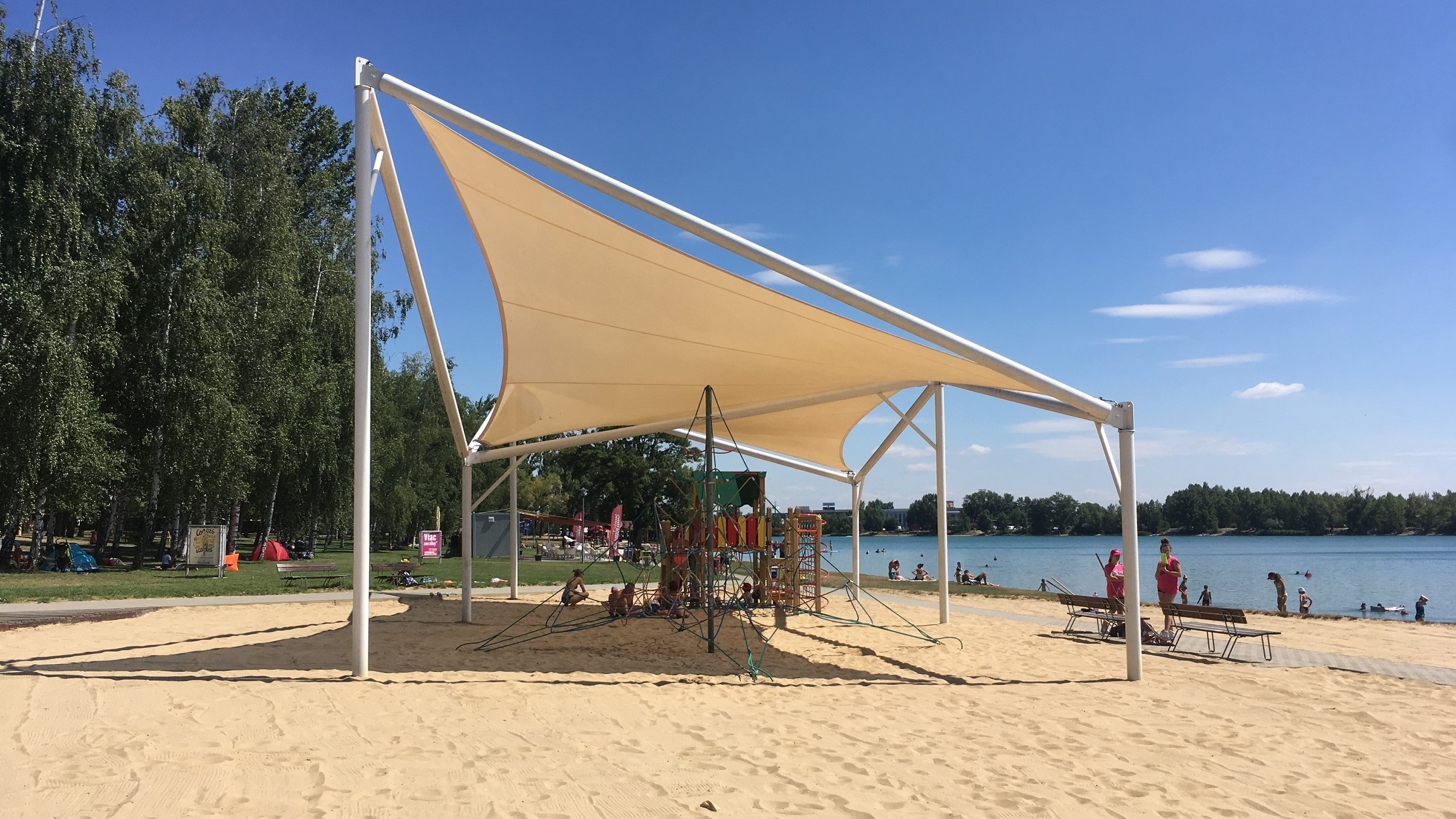 Na Zlatých pieskoch trávu tiež polievajú, ale len tú pri vode, na zbytok areálu sa už nedostane. Prechádzať sa môžete cez veľké nevyužité plochy a blaho na duši vám žiaden kvetinový záhon nevyvolá.