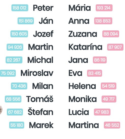 Najčastejšie mená na Slovensku: