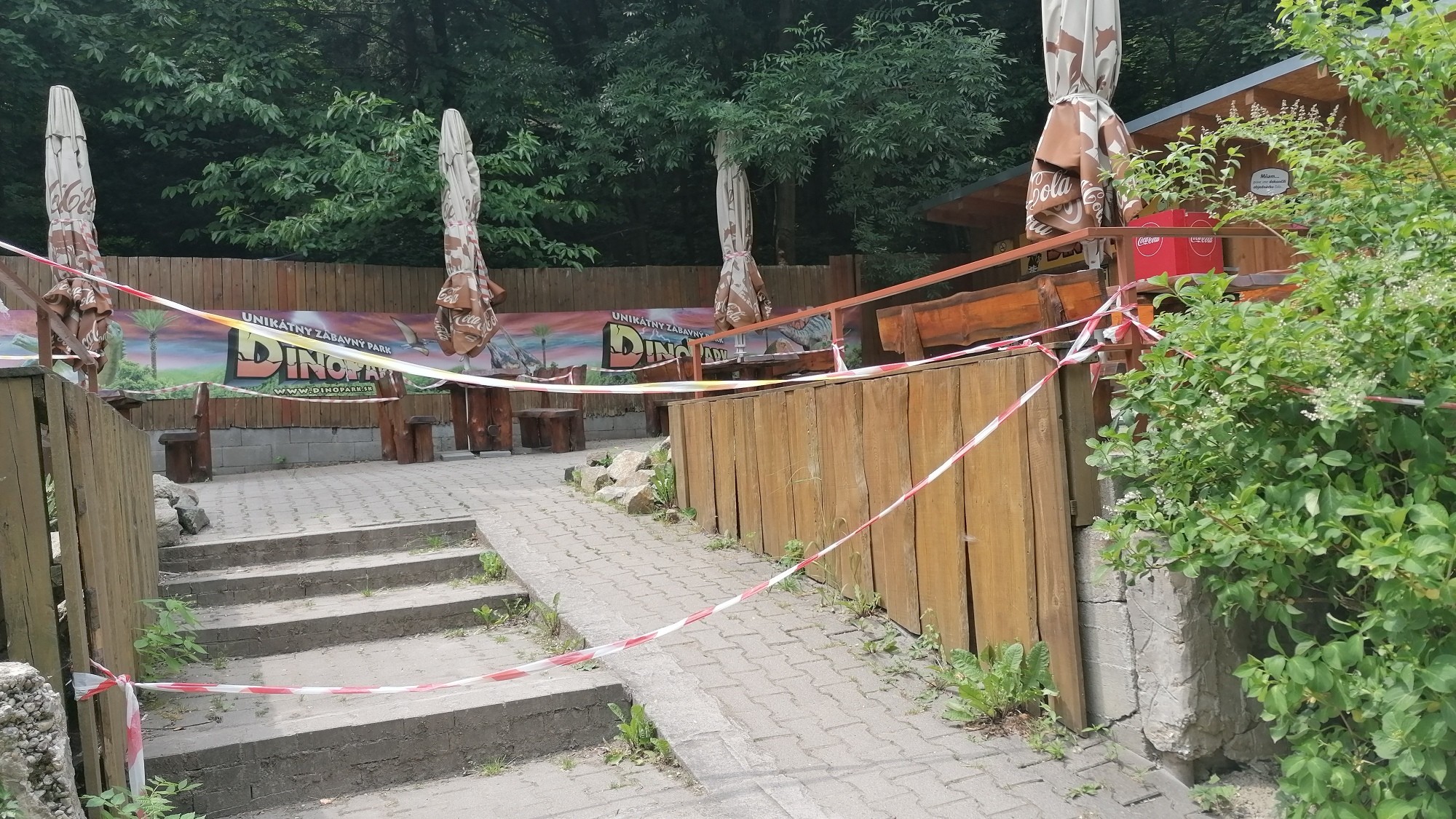 Obľúbená atrakcia v zoo je zatvorená, neznamená to však, že by ju oplotili vysokým plotom či nebodaj desiatky modelov prehistorických jašterov rozobrali a odviezli. Vstup do Dinoparku je zapáskovaný a rovnako je obalený páskou dokonca aj dinosaurus nachádzajúci sa pred vstupom do zoo či atrakcie stojace pred vstupom do parku. Páska je i nad strmou skratkou, ktorá viedla cez les z lesného chodníčka (od nosorožcov k plameniakom) priamo k Dinoparku. Modely, ktoré sa hýbali a vydávali zvuky, sú vypnuté. Nefunguje Dinokino, uzavreté sú aj tamojšie wc, Dinoshop či bufet.