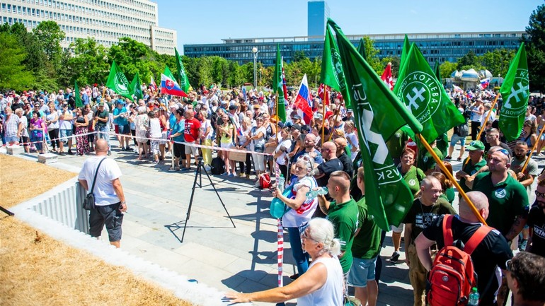 Pred úradom vlády ľudia protestovali proti opatreniam i očkovaniu