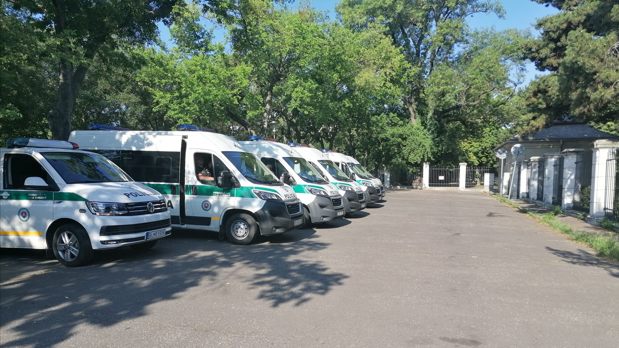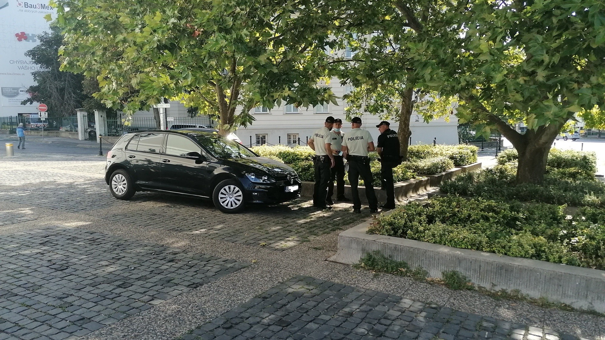 Policajné autá pri úrade vlády nad Námestím slobody.