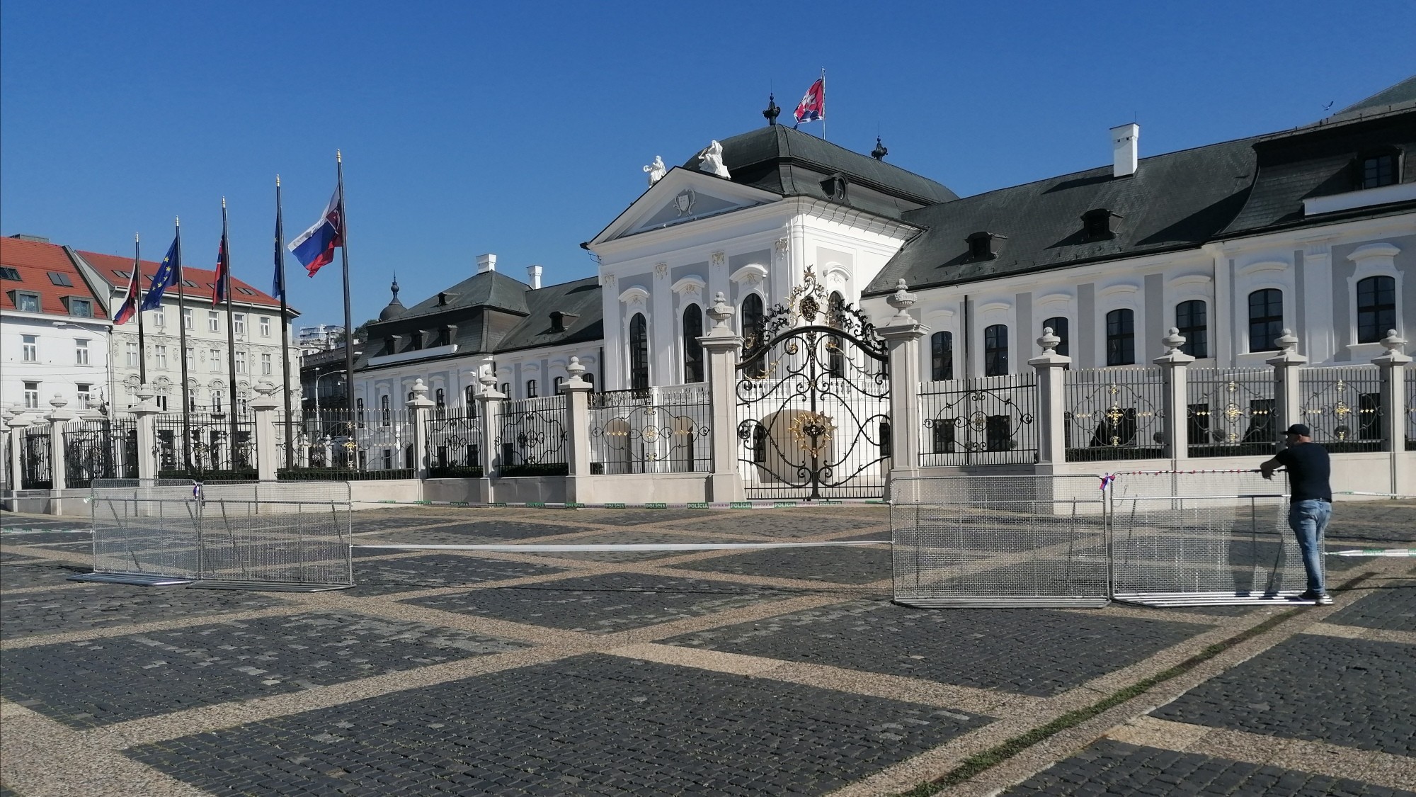 Priamo pred Prezidentským palácom je priestor prázdny, na mieste sú policajné zábrany.