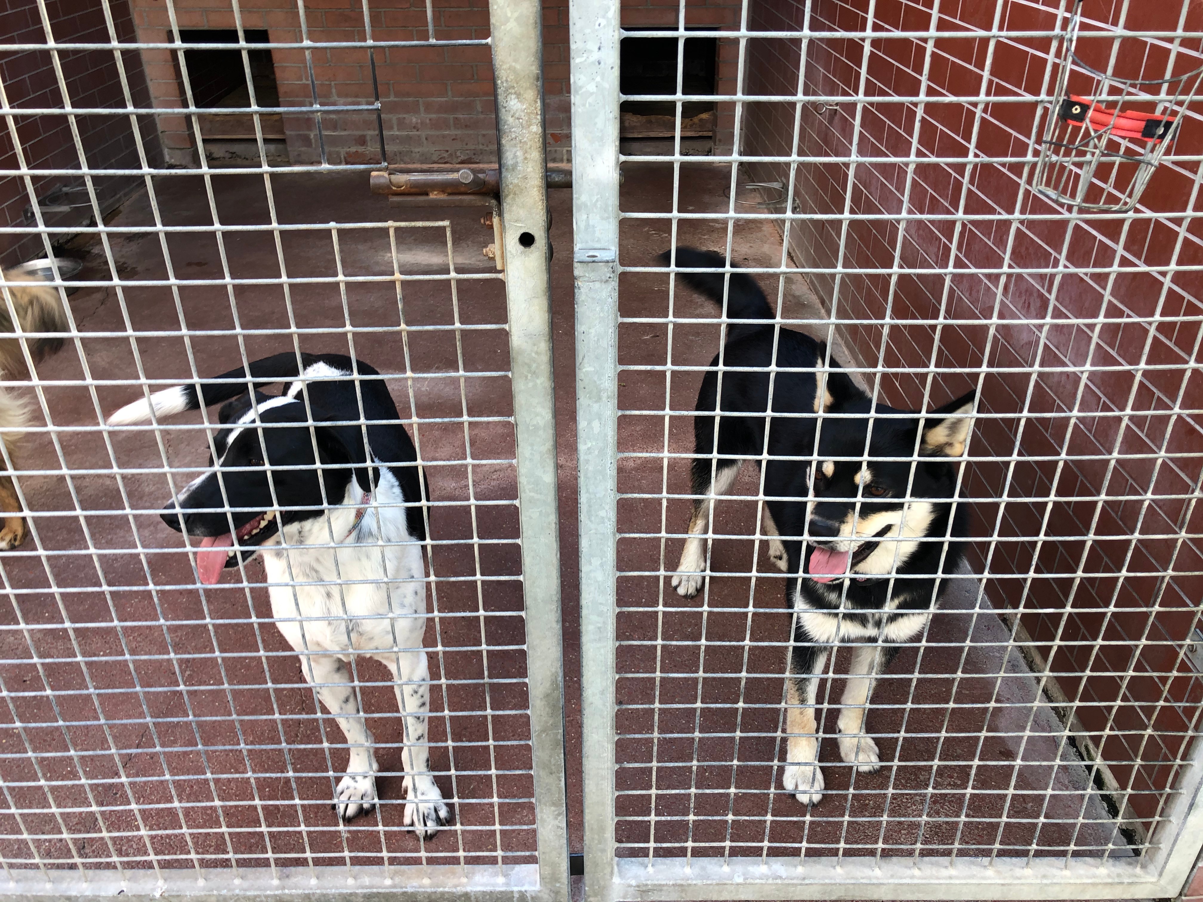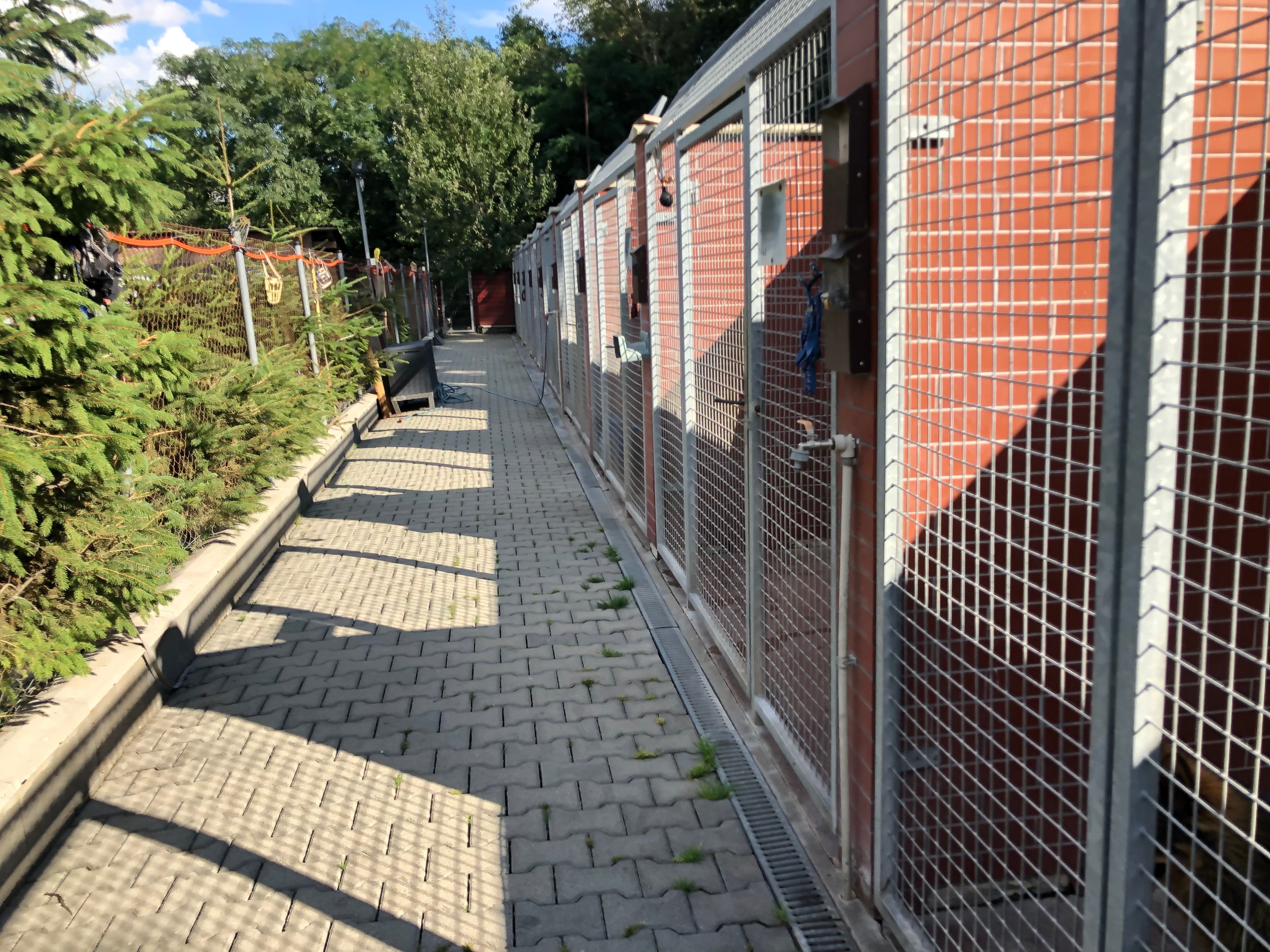 Psíky sa nachádzajú v takýchto kotercoch, ošetrovateľ vám vhodného psíka odporučí.
