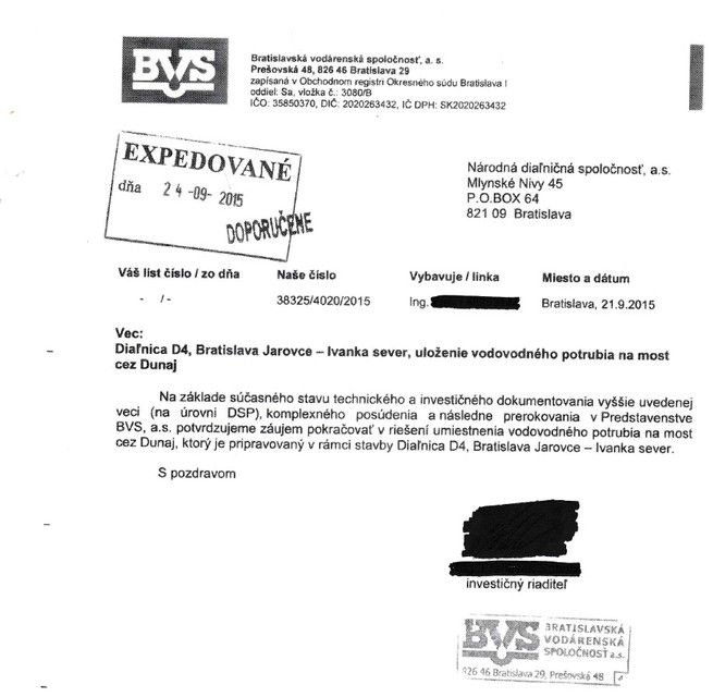 Dokumenty k financovaniu si môžete po rozkliknutí pozrieť v tejto galérii. Vidno, že záujem o vybudovanie potrubia potvrdila BVS aj v roku 2015: