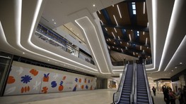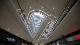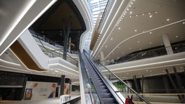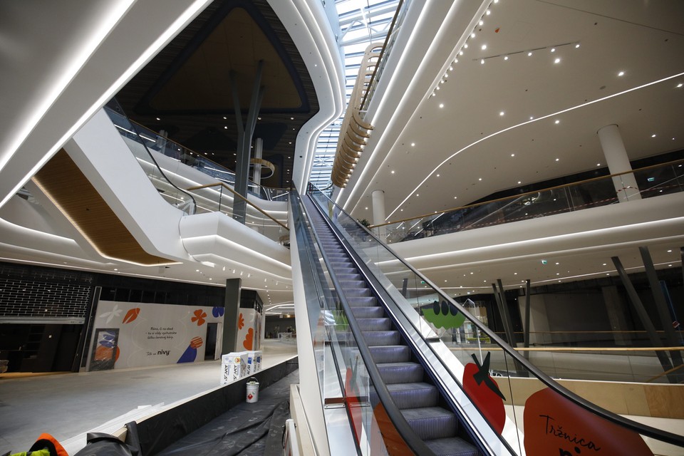 15-metrov dlhým eskalátorom sa dostanete cez tri podlažia až do gastro časti k tržnici.