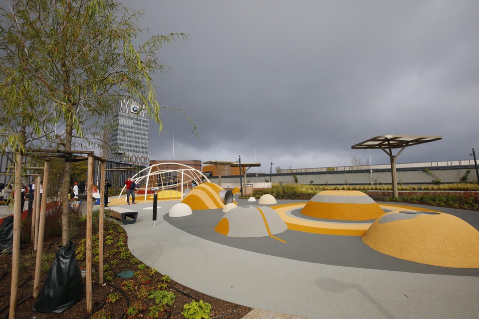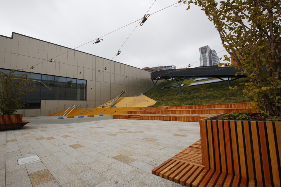 Zelená strecha ponúkne zákutia na oddych, šport či zábavu pre deti. Na streche Nív vysadili 134 vzrastlých stromov, desiatky rastlín a nájdete tu aj bežecký okruh dlhý 550 metrov, workoutové cvičiská, grilovaciu zónu. Je tu aj komunitná záhrada s pocitovým chodníkom a hmyzím hotelom a lavičky s USB nabíjačkami. Rodiny s deťmi si môžu užiť ihrisko s motívom slnečnej sústavy.