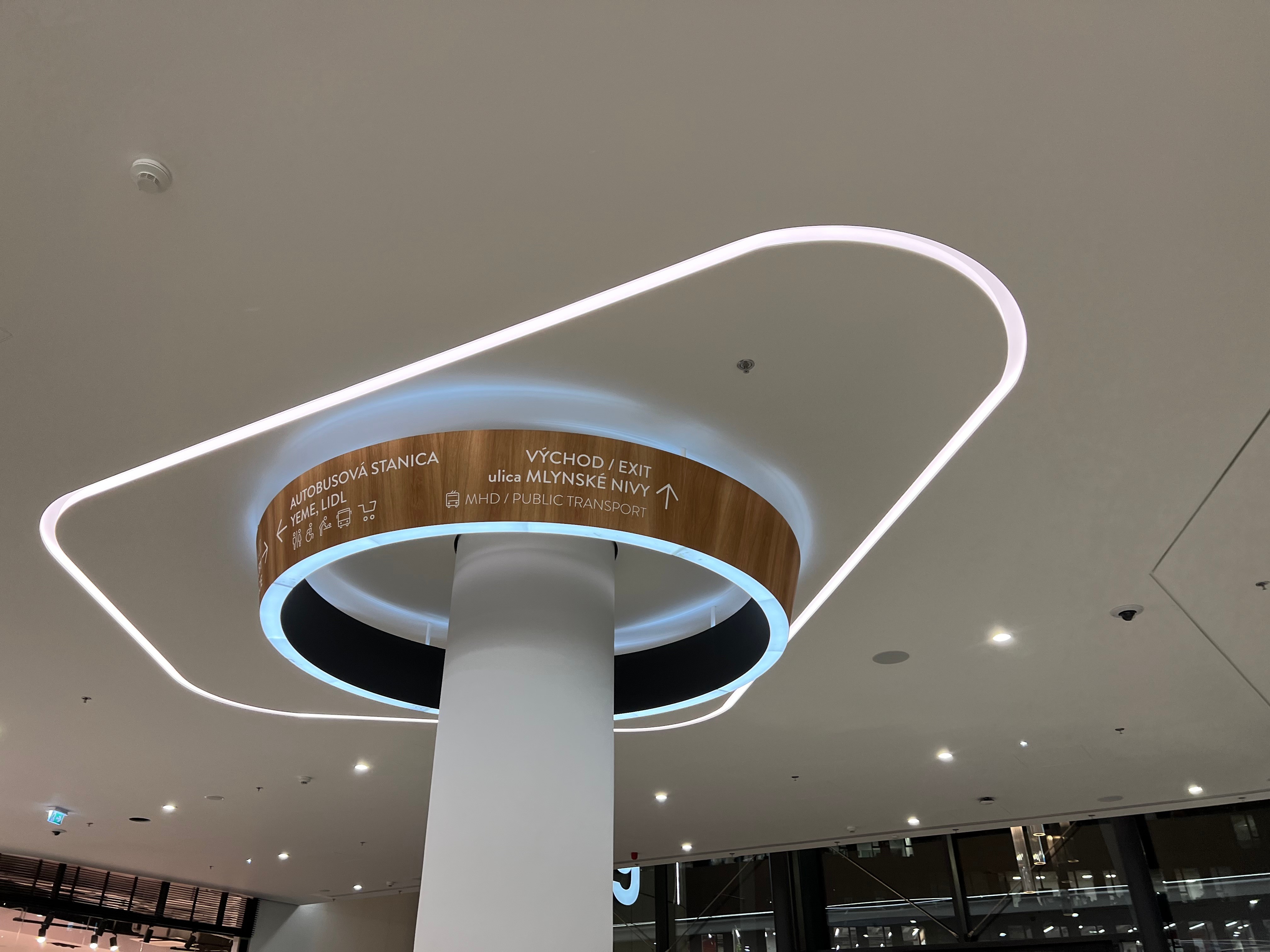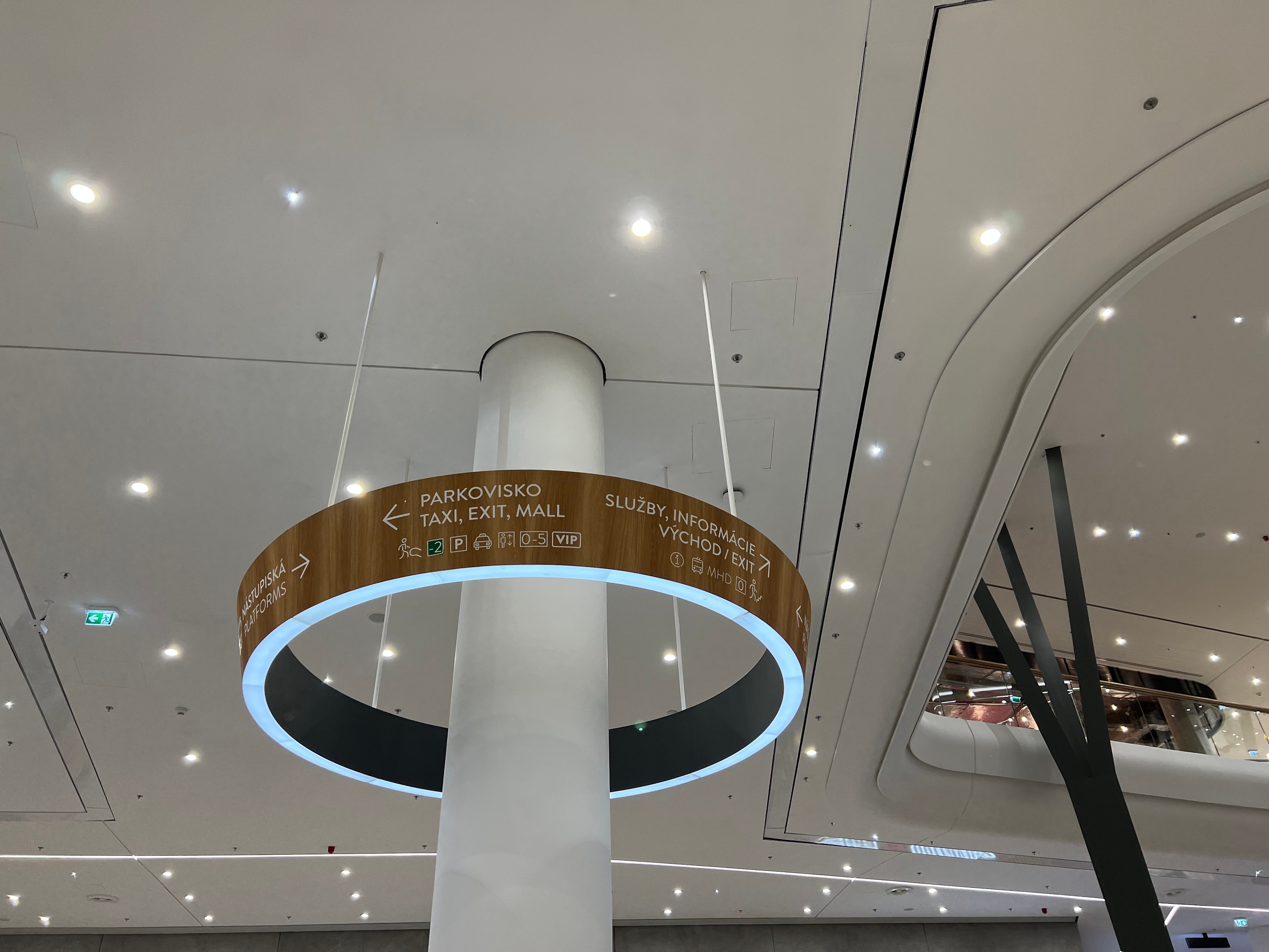 K východu z budovy vás navádzajú aj takéto smerové tabule