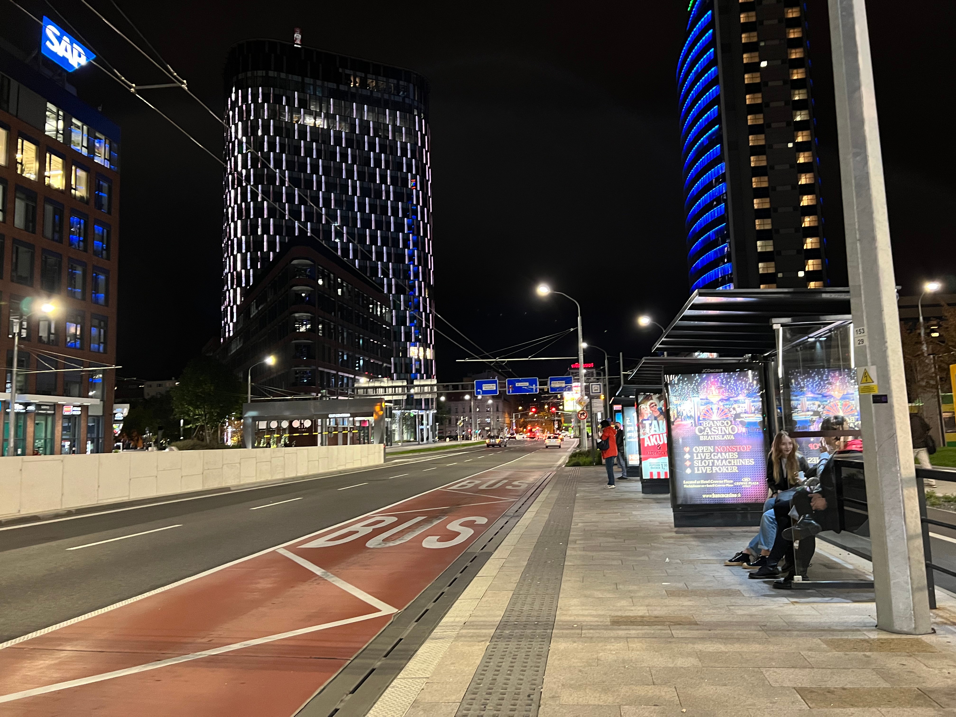 Výhodou nonstop otvorenej budovy v nočných hodinách je, že tam môžete prípadne počkať na autobusový spoj, alebo keď idete niekoho vyzdvihnúť. Pôvodná stanica sa na noc úplne uzamykala, počkať sme mohli jedine tak vonku. Na informáciách pri vstupe z exteriéru z hlavného vchodu sa nachádza SBS, u ktorého sa môžete prípadne informovať. Nás však navigoval do výťahov, ktoré nefungovali.