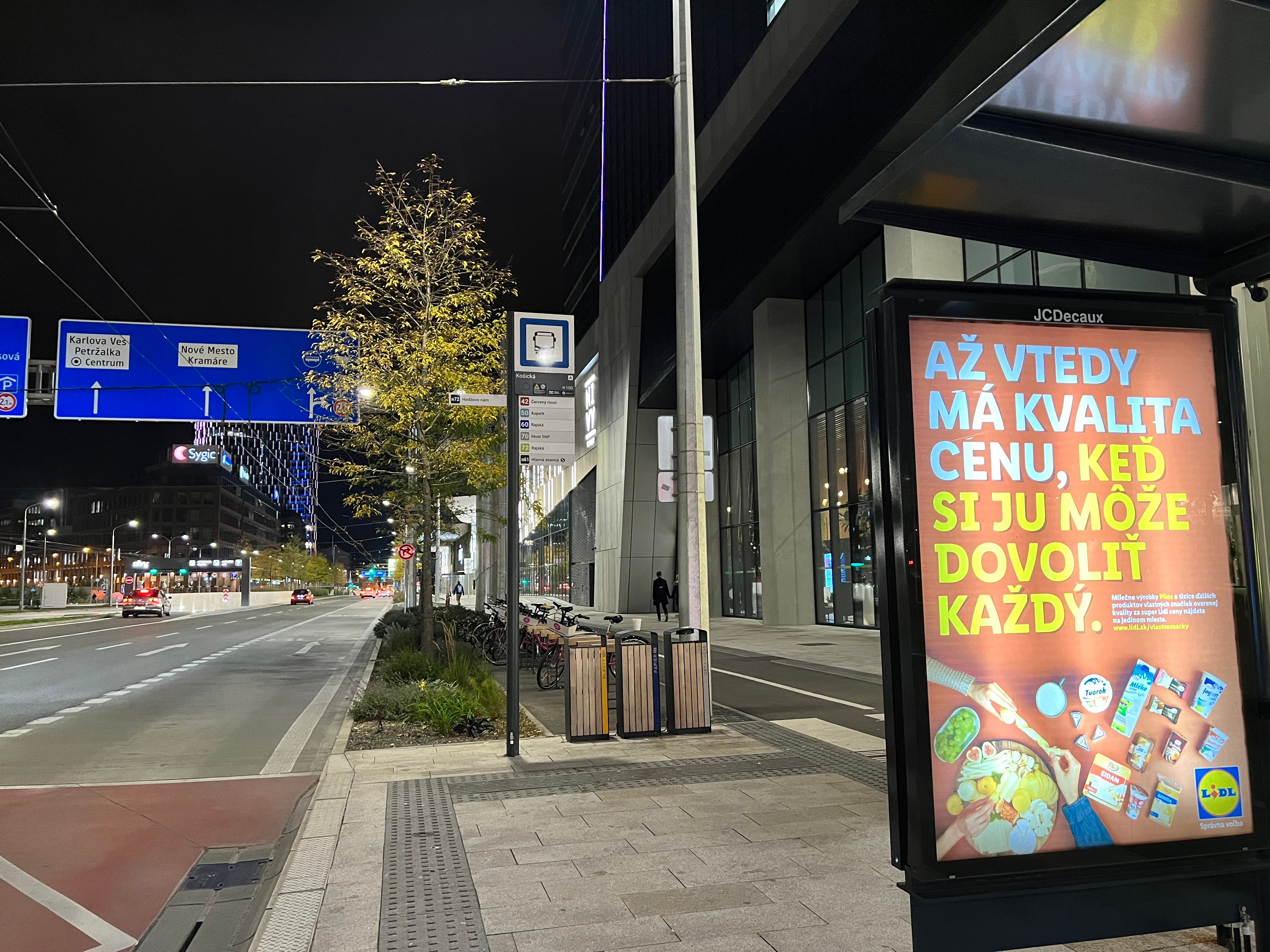 MHD zastávka Košická, ktorá sa nachádza pri vnonstop chode/východe zo strany Mlynských Nív -Svätoplukova