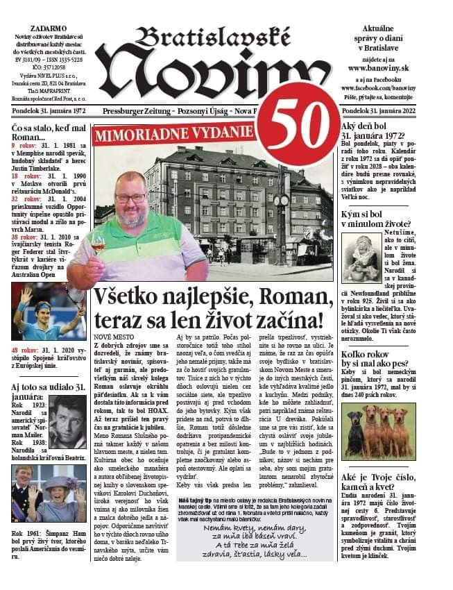 V utorok, ani nie pred týždňom, sme mu v redakcii gratulovali k 50. narodeninám. Hovorili sme, položartom, že v päťdesiatke sa život iba začína. V tomto duchu sme mu venovali ako darček i špeciálne upravenú titulku Bratislavských novín.
