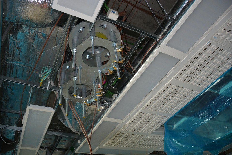 Operačná miestnosť, hore vzduchotechnický výustok so špeciálnou technológiou z Fínska