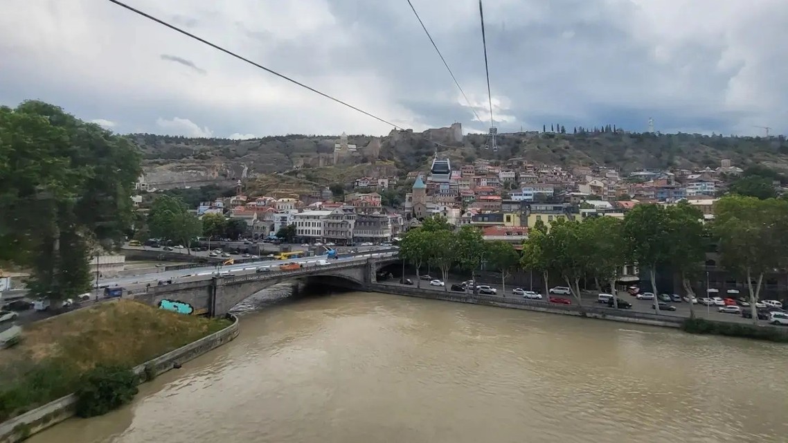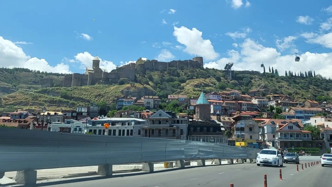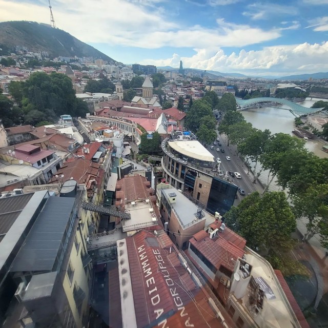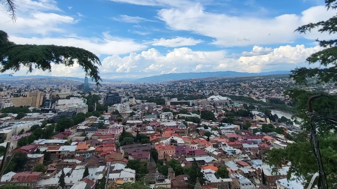 Pohľad z diaľky na metropolu Gruzínska.