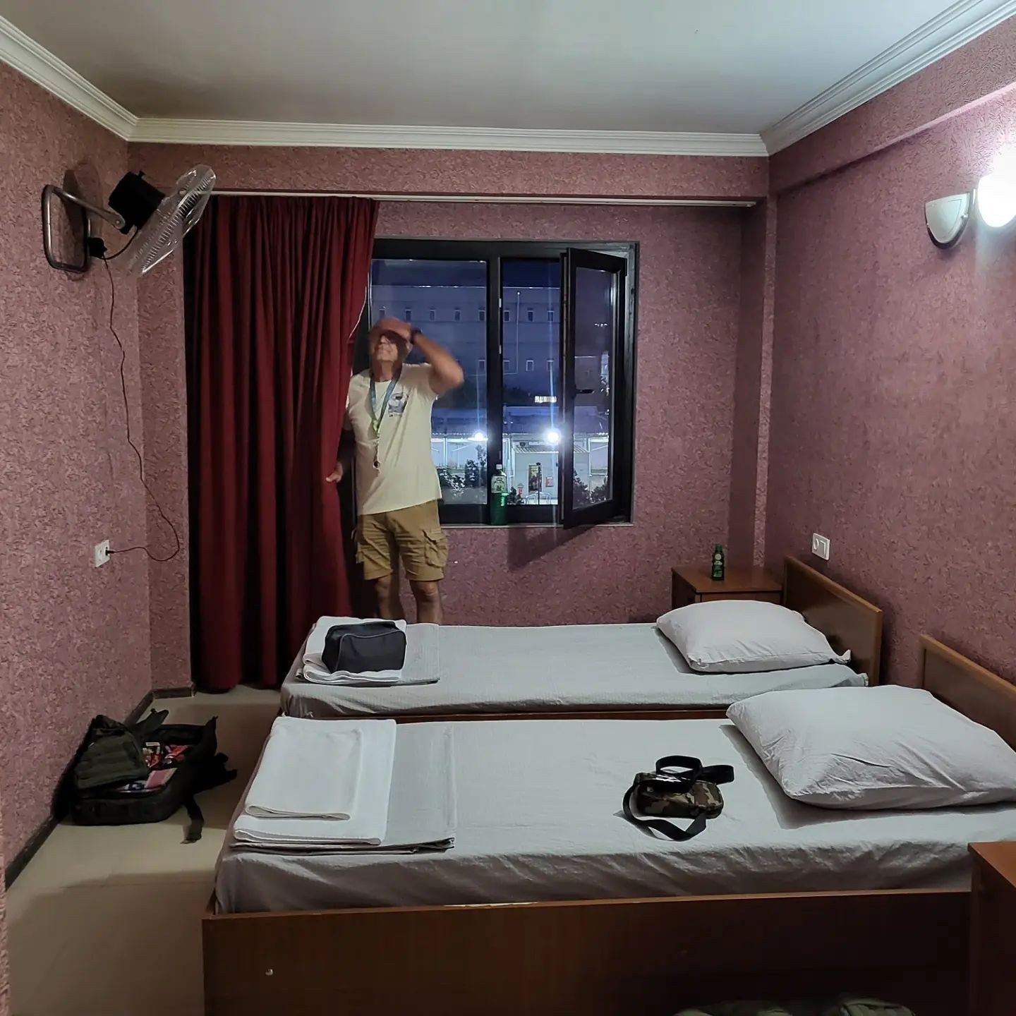 Hotelová izba - klimatizáciu nahrádza klasický ventilátor.