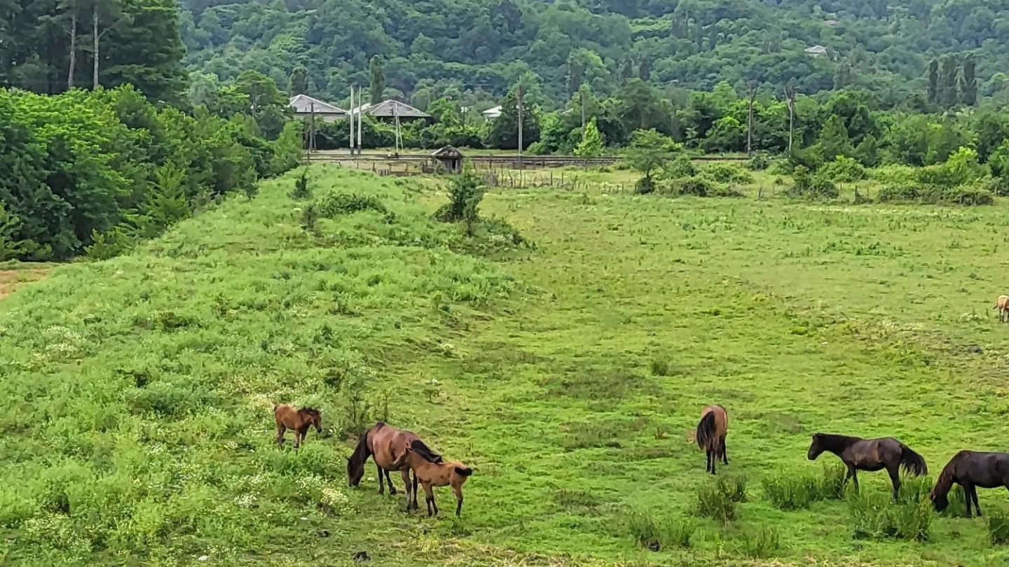 Pasúce sa kone popri ceste v Gruzínsku.