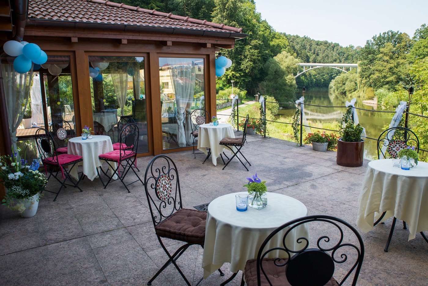 Čo však praví romantici ocenia úplne najviac, je poloha hotela. Stojí na brehu riečky s krásnym výhľadom na historický vodný mlyn s dodnes sa krútiacim kolesom. Obkolesuje ho prekrásne prírodné prostredie vhodné na dlhé romantické prechádzky po nábreží či tichým lesoparkom. Romantická je aj prechádzka z hotela do historického centra mesta a späť, ktorá je vďaka početným výhľadom sama osebe zážitkom.