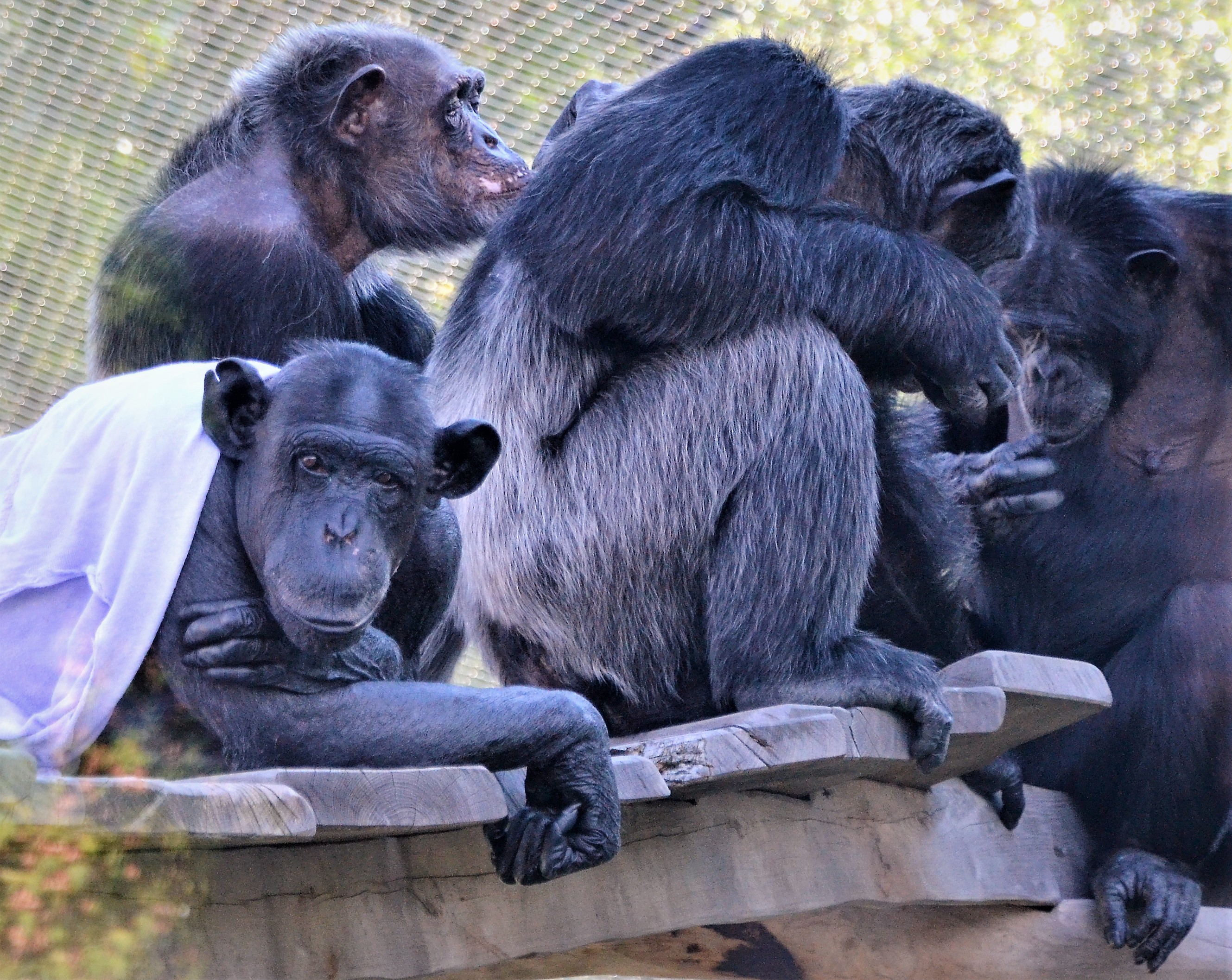 „V našej zoologickej záhrade sa šimpanzom venujeme už od roku 1979. Najstarším obyvateľom ZOO je práve samica šimpanza, Uschi, ktorá sa tu aj v roku 1981 narodila. Súčasná šimpanzia skupina je zložená z jedného samca a štyroch samíc rôzneho veku. Aj keď vo svojej podstate sú stále divokými zvieratami, je u nich možné sledovať viditeľné rozdiely v povahe, prístupe k rôznym činnostiam či novým skúsenostiam - každý z jedincov našej skupiny má svoje špecifické črty a charakter. Niekedy je veľký zážitok sledovať ich vzájomné interakcie v skupine, správanie voči návštevníkom či chovateľom,“ približuje zoologička Mgr. Magdaléna Hadová, ktorá sa v ZOO venuje primátom.