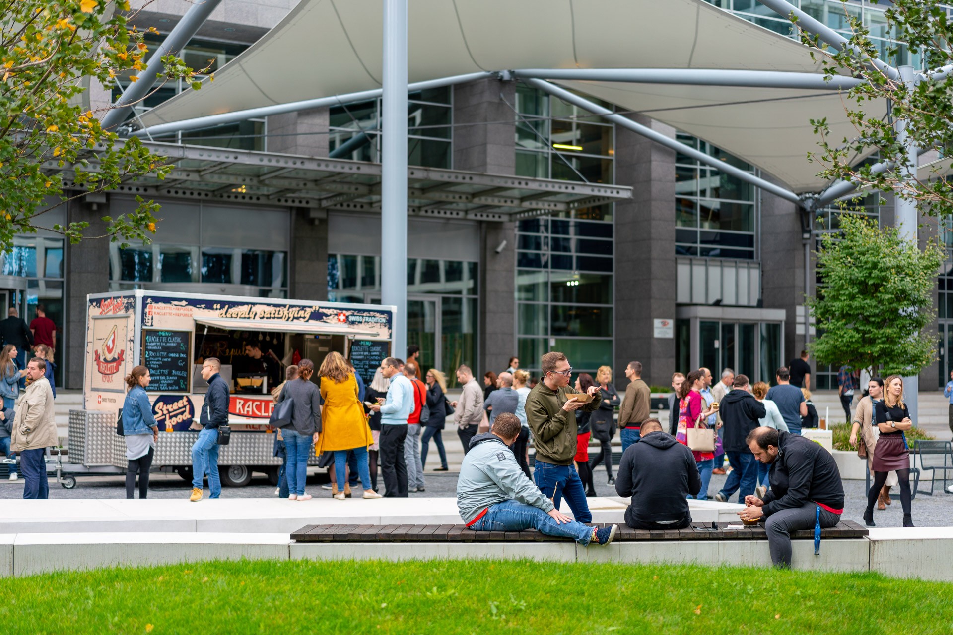 Častejšie trávenie času v spoločných priestoroch a prechádzky môžu viesť k nadväzovaniu vzťahov najmä v lokalitách, kde sa stretávajú viaceré komunity – kolegovia z rôznych oddelení alebo z rozličných firiem. Napríklad v Panorama Parku, ktorý je ohraničený kancelárskymi budovami Pribinova 19, Tower 115 a obytnými vežami Panorama Towers, sa pravidelne konajú rôzne akcie či vernisáže. Prepájajú ľudí z okolitých budov a vedú k tvorbe mestských komunít. Jedna z najznámejších vznikla vo štvrti Georgetown v americkom Washingtone – takzvané Streateries nabádajú okoloidúcich prisadnúť si vo verejnom priestore k veľkým stolom a formovať vzťahy v komunite pri spoločnom obede či večeri.