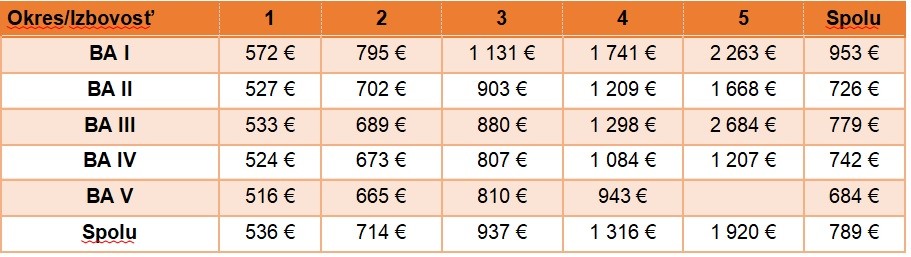 Priemerné ceny prenájmu v Bratislave vrátane energií za 4. kvartál 2022: