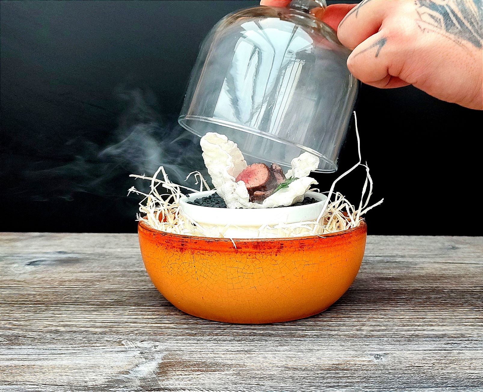 - Kačacie prsia so zelerovým pyré, zľahka zaúdené čerešňovými pilinami Afrodita Čereňany