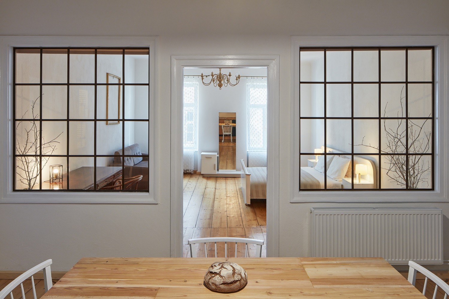 Stará Pekárna vyniká kombináciou rôznych umeleckých slohov od gotiky cez renesanciu až po barok a klasicizmus. Unikátna je predovšetkým historická klenba v tzv. “mázhause”, dochovaná pec “stará pekáreň”, kde sa po 350 rokov pieklo, a tiež gotický zrub v dvorovej časti domu. Ubytovanie ponúka v priestranných apartmánoch s pôvodnými podlahami a konštrukciami a tiež s vlastnými kuchynkami. Každý apartmán je trošku iný, ale spája ich jedinečný minimalistický štýl, kombinujúci históriu s potrebami komfortného ubytovania 21. storočia.