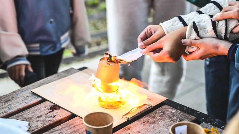 Po vedomostnej polhodinke na streche centra prebudili zvedavosť piatakov Tomášove pokusy. Takáto zážitková chémia a fyzika vyvolala nemý úžas aj v dospelých. Tínedžeri mohli vidieť, ako sa dá pomocou karbidu vápenatého vytvoriť hlasný „výbuch“. Týmto pokusom im Tomáš demonštroval rozpínanie plynu. A nebola núdza ani o dobrovoľníkov, vyskúšať si to chcel každý.