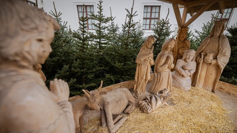 Návštevníci Bratislavského hradu si na nádvorí hradného paláca môžu pozrieť drevený betlehem, ktorý Kancelárii Národnej rady SR každý rok bezplatne zapožičiava obec Babín.